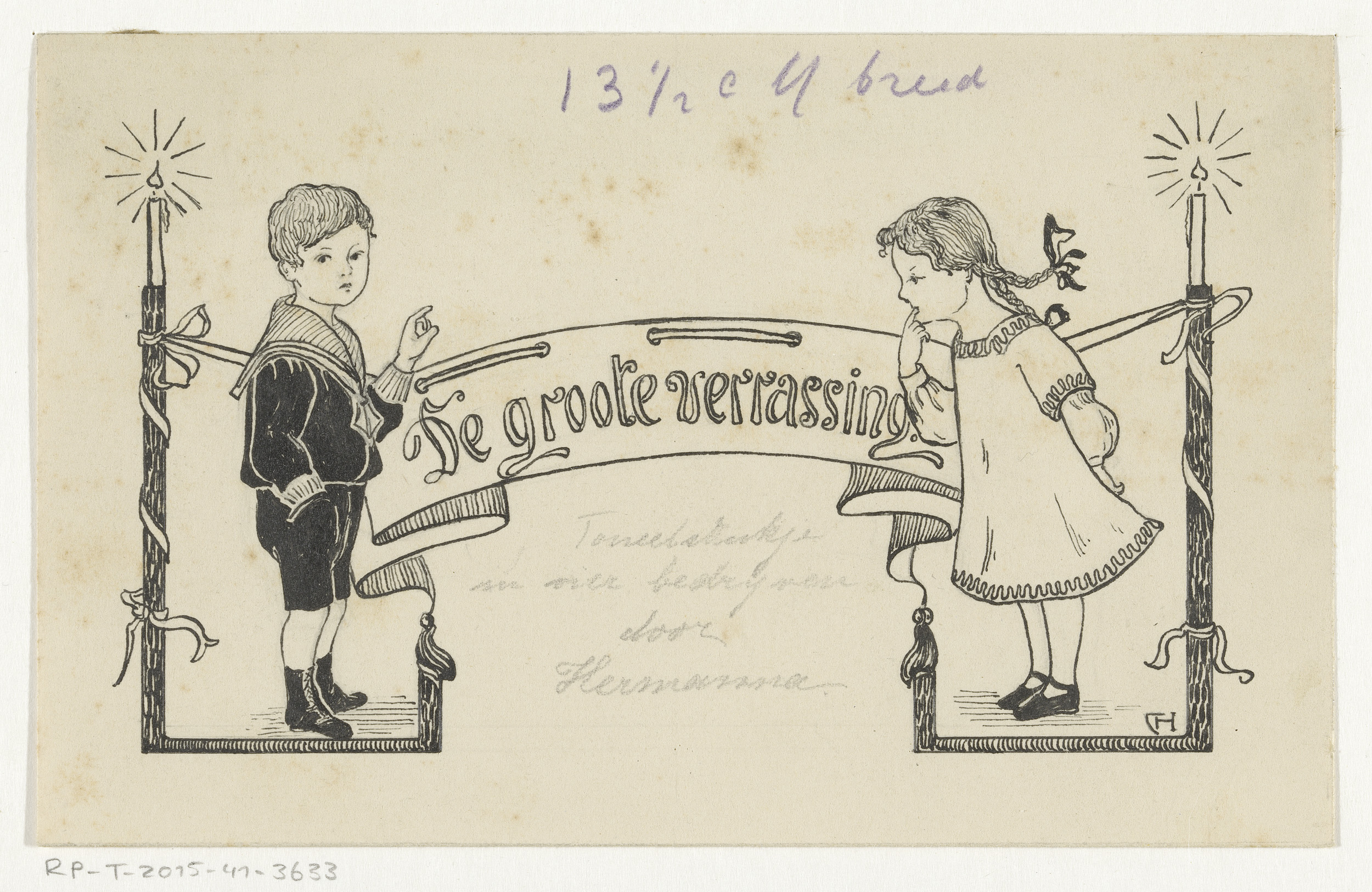 Jongen en meisje bij een banier