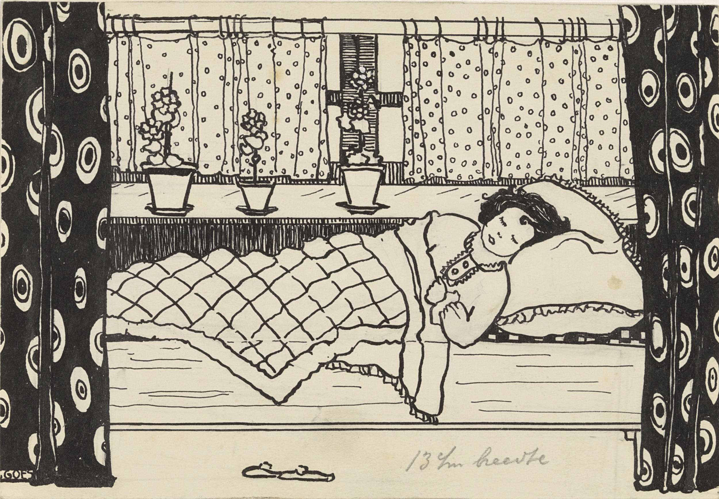 Meisje slapend naast een vensterbank