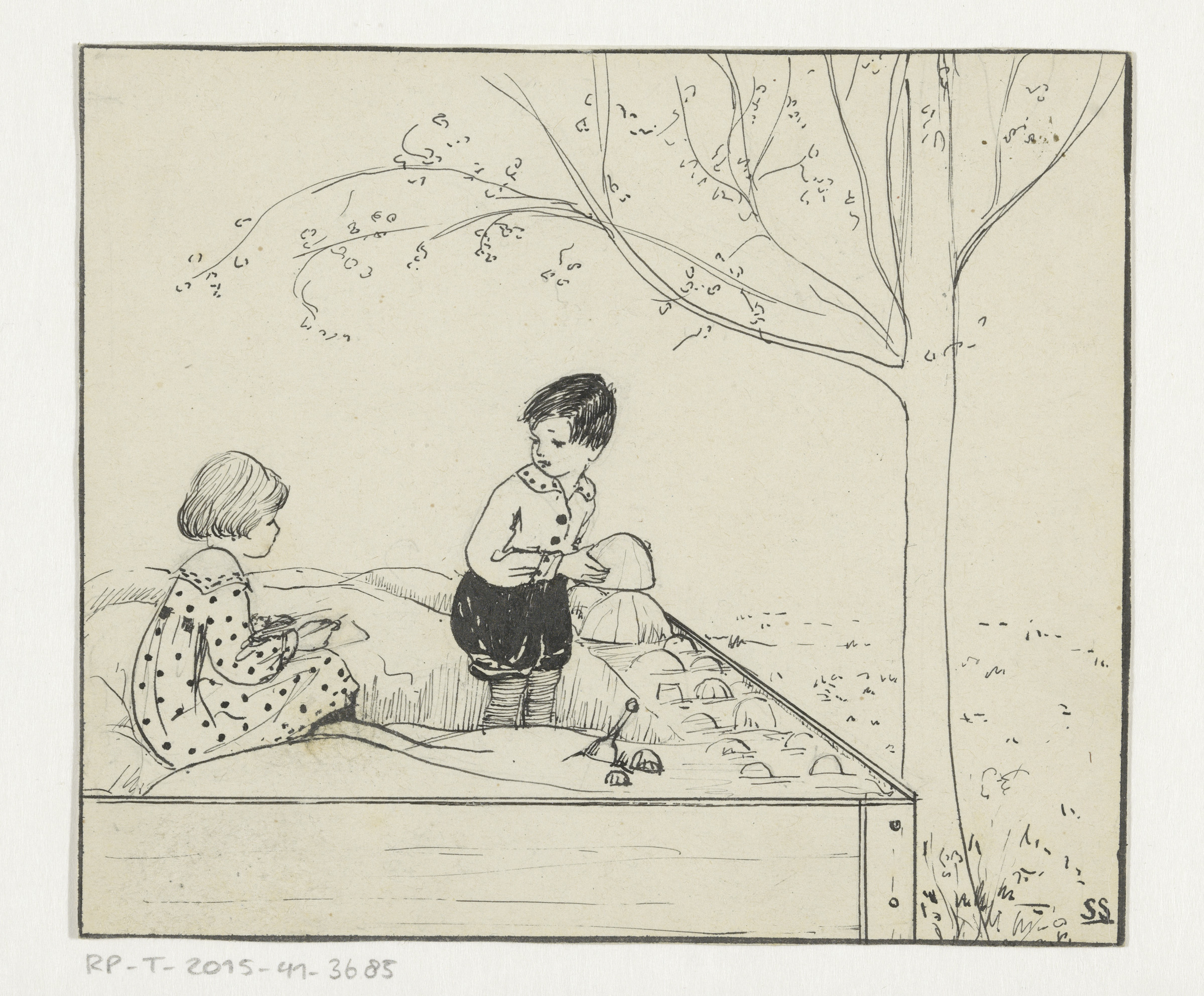 Meisje en jongen onder een boom