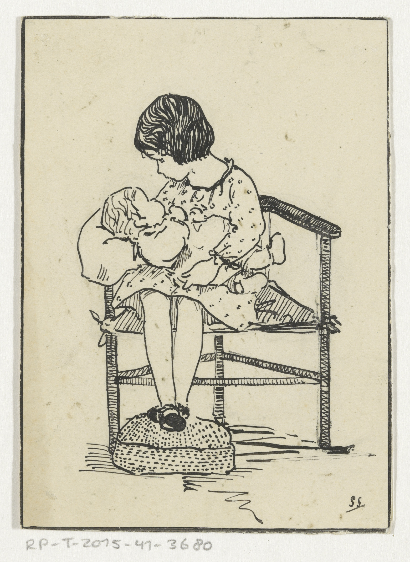 Meisje met een baby op schoot