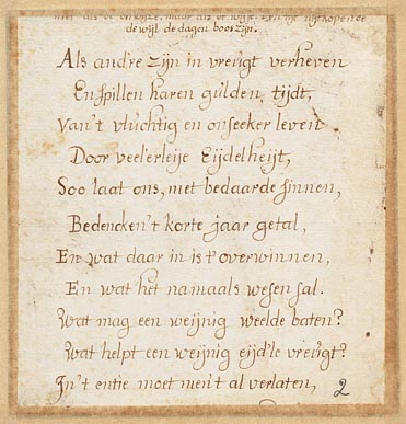 Als 't buyten woedt, Is 't binnen soet (recto), hand...