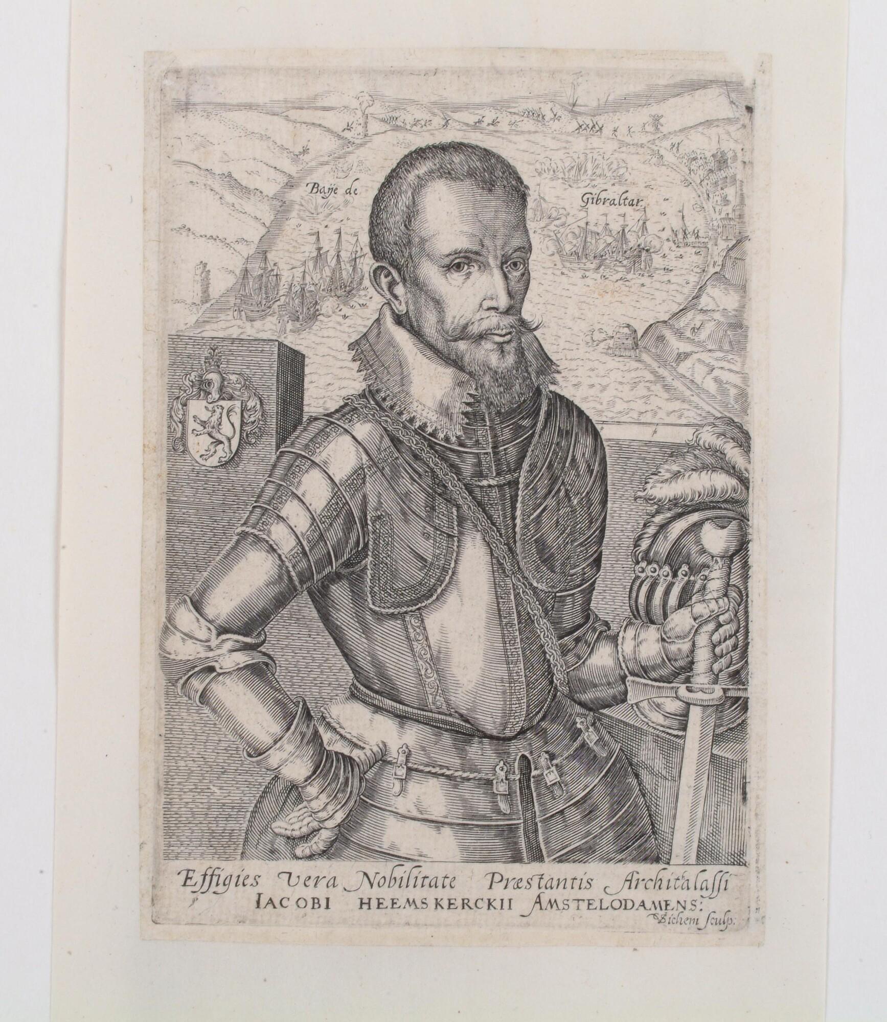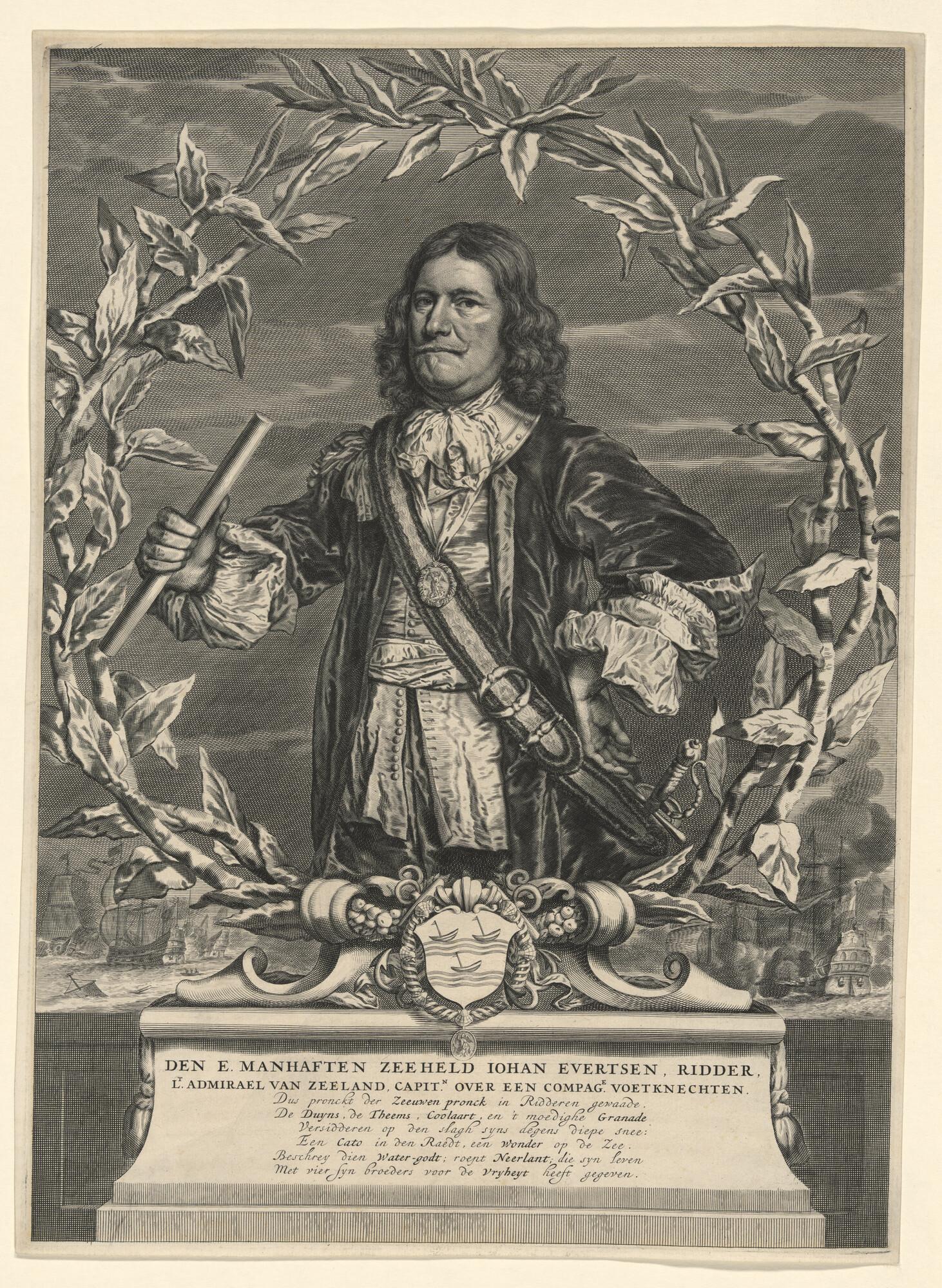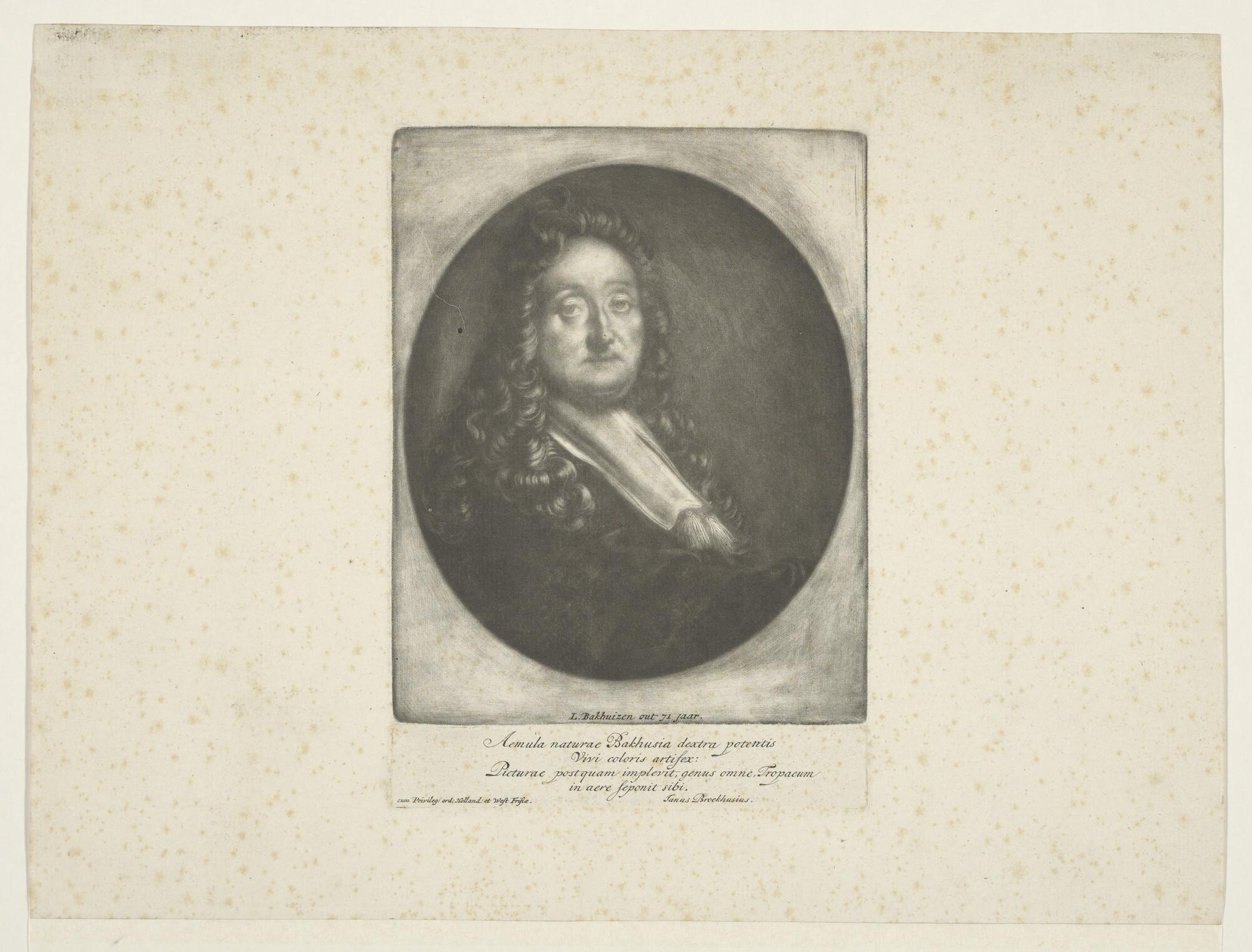 Portret van Ludolf Backhuysen, met daaronder een vie...