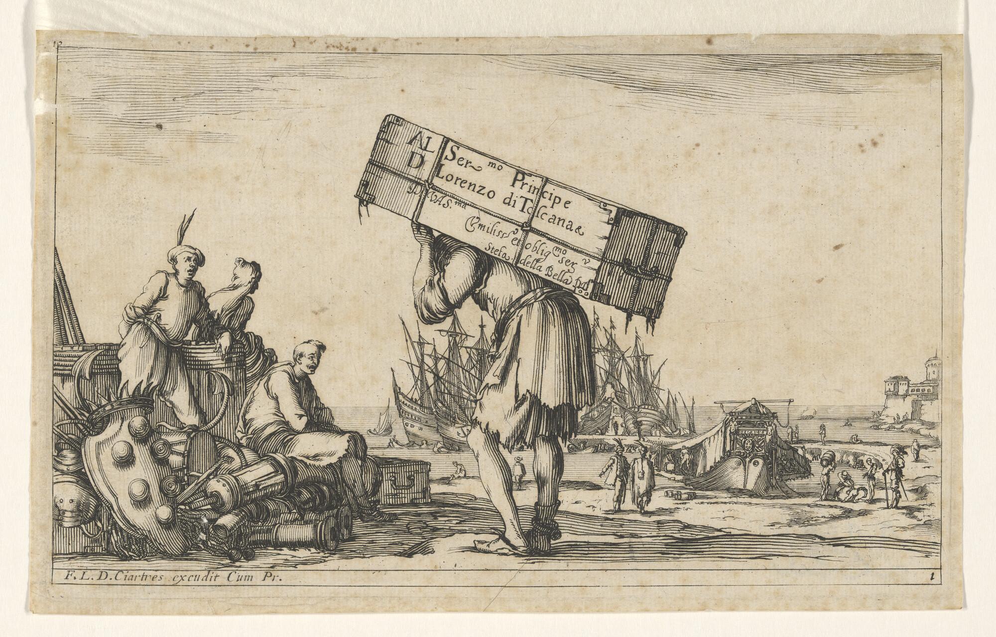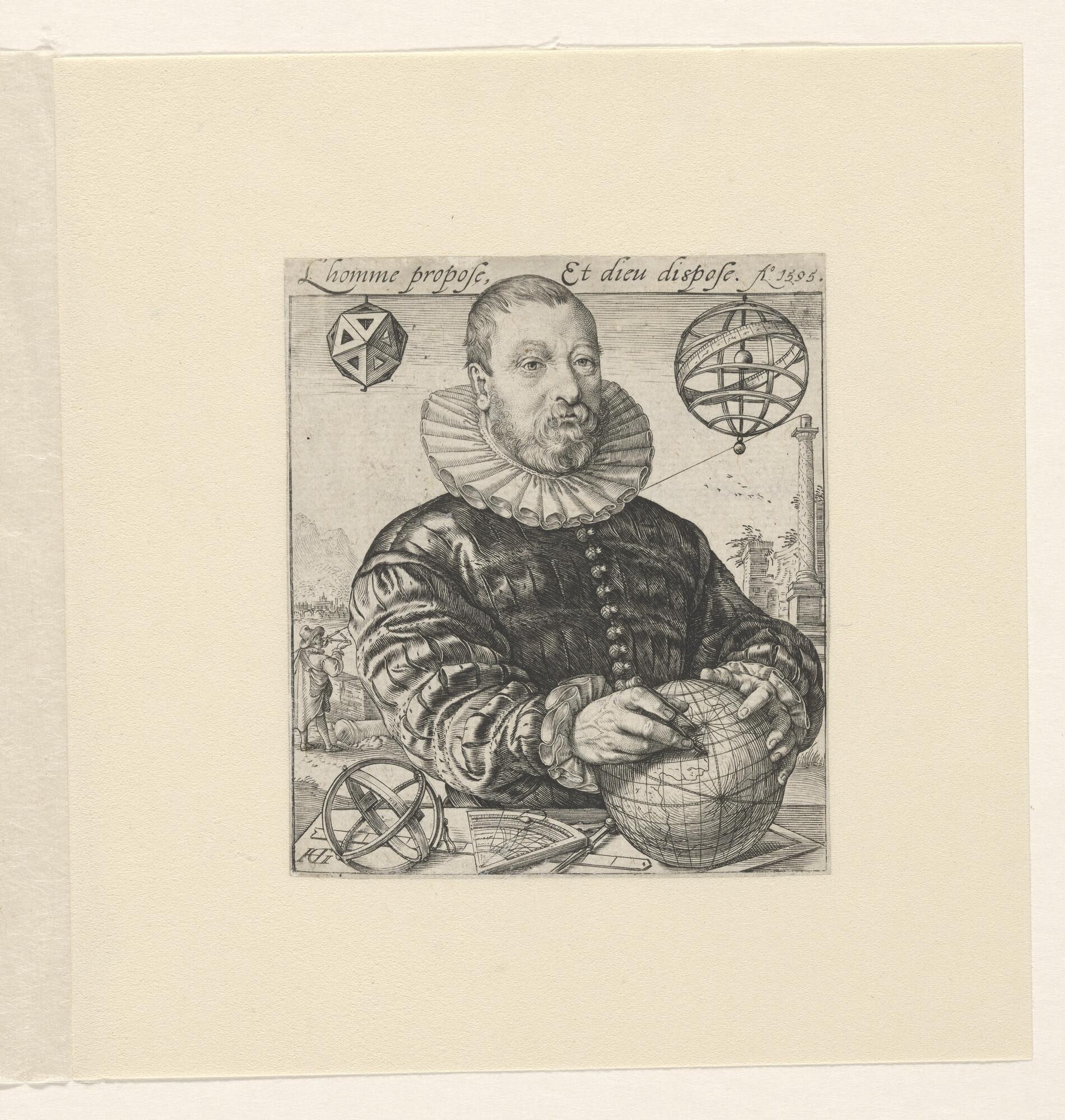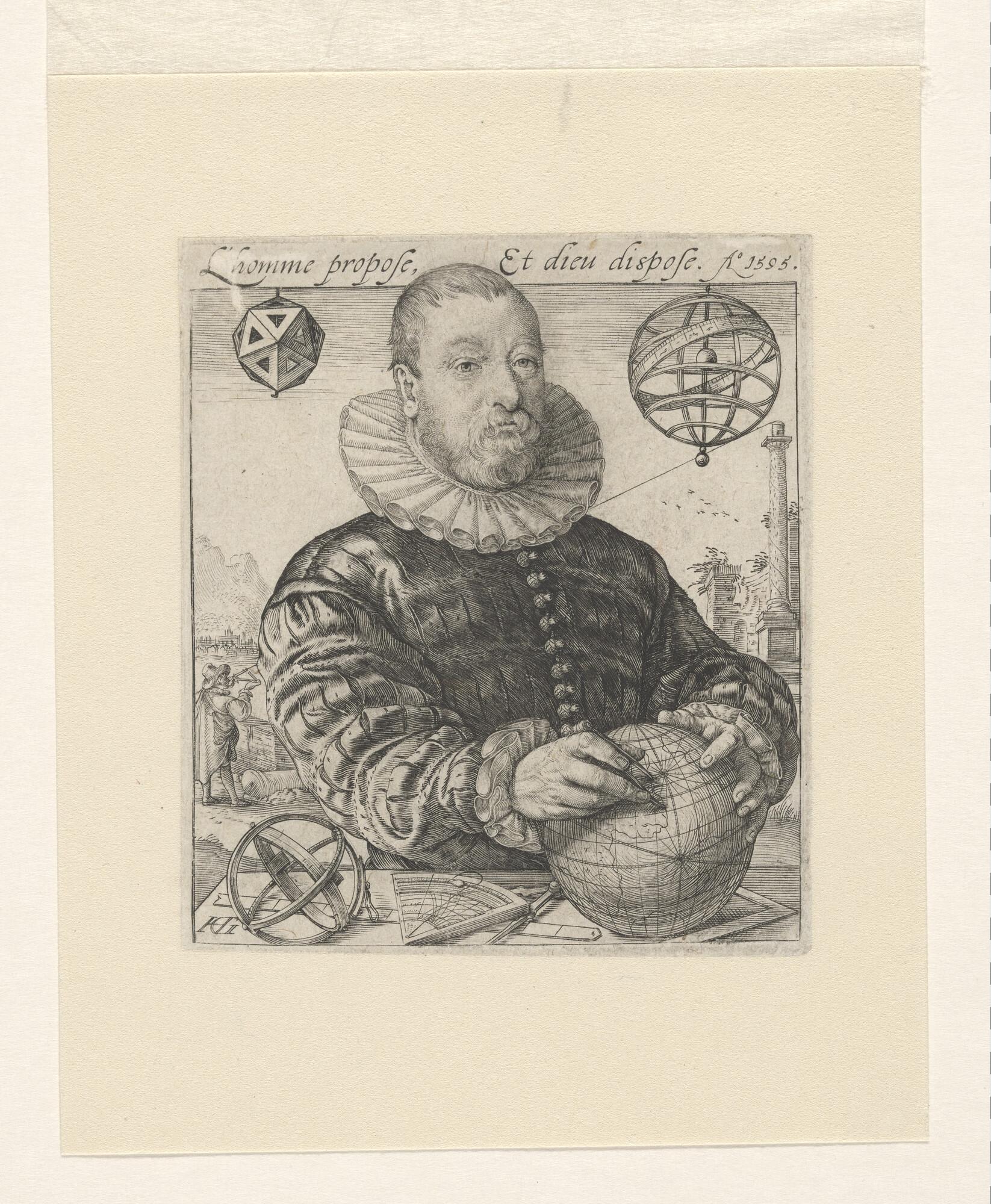 Portret van Ludolf Backhuysen, met daaronder een vie...