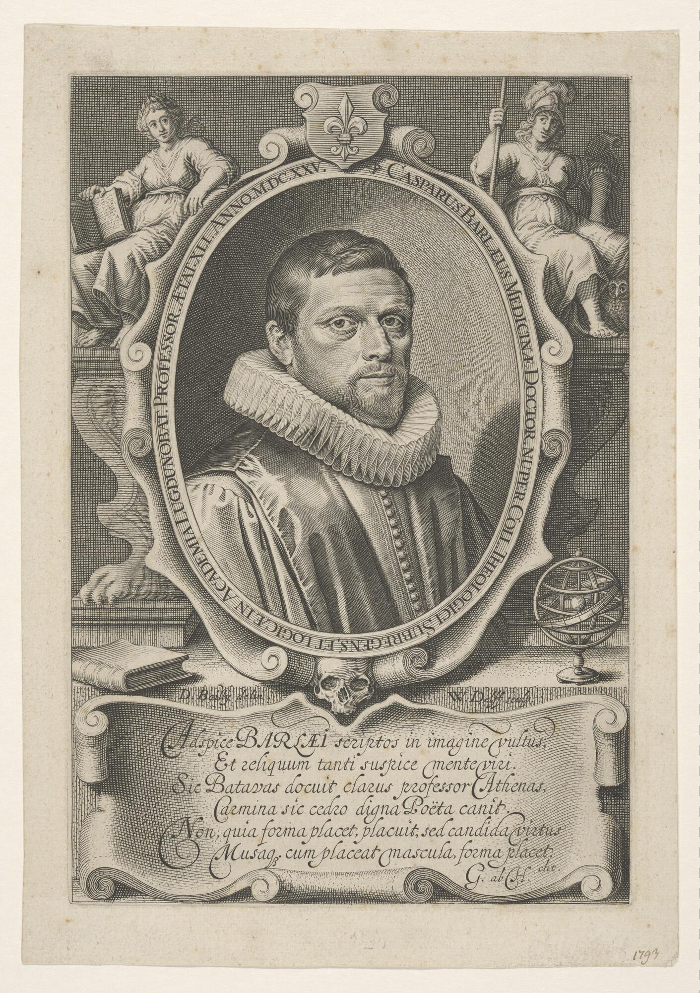 Portret van Caspar Barlaeus, bortsbeeld in ovaal met...