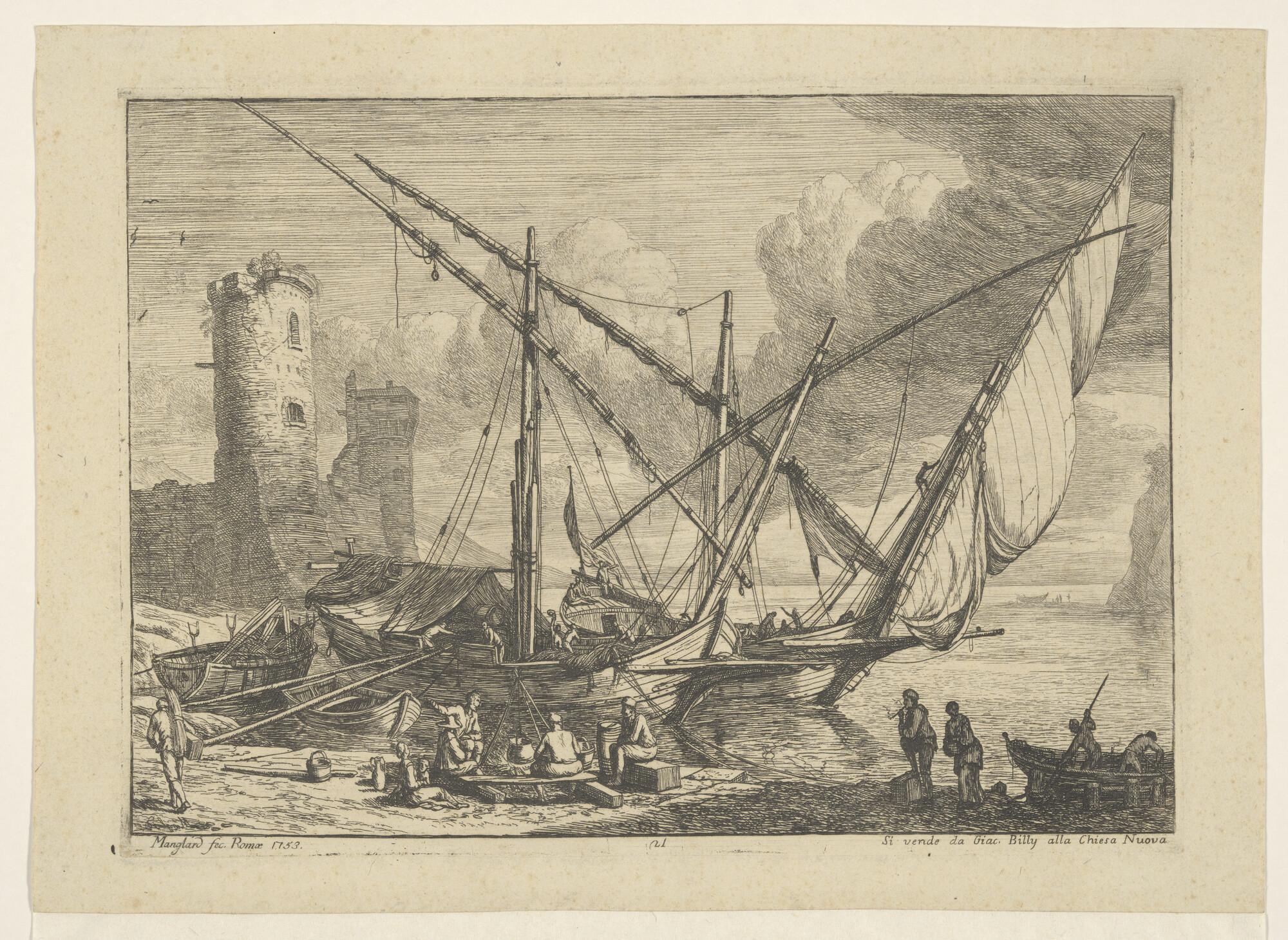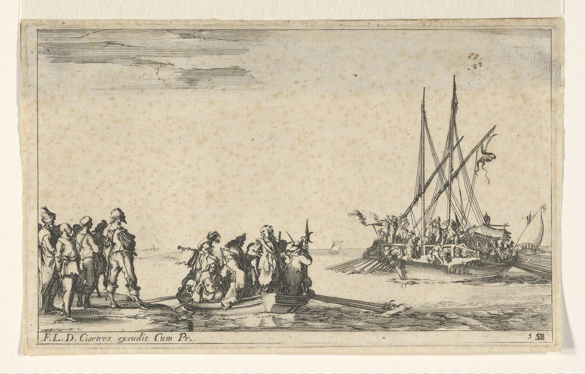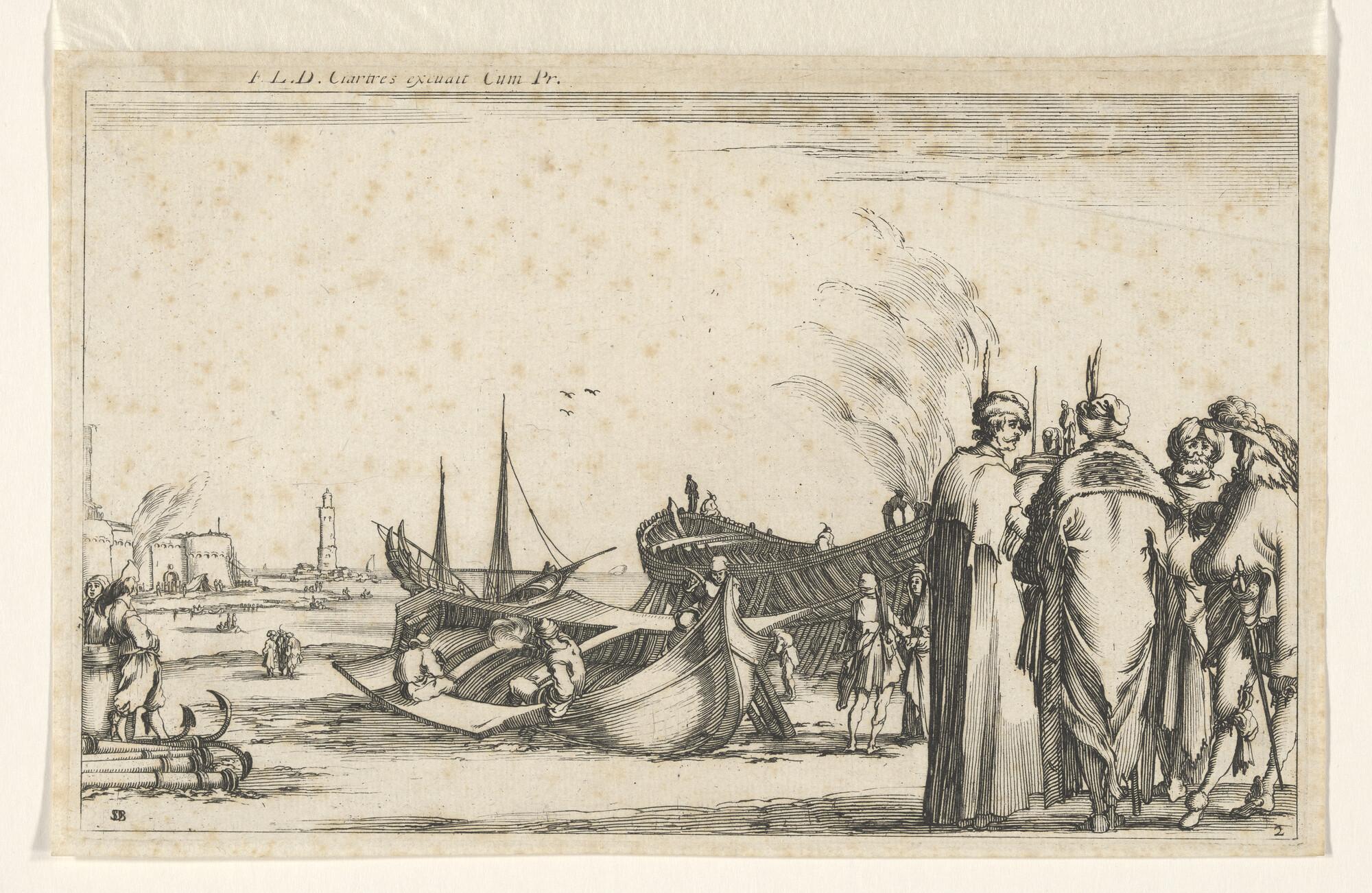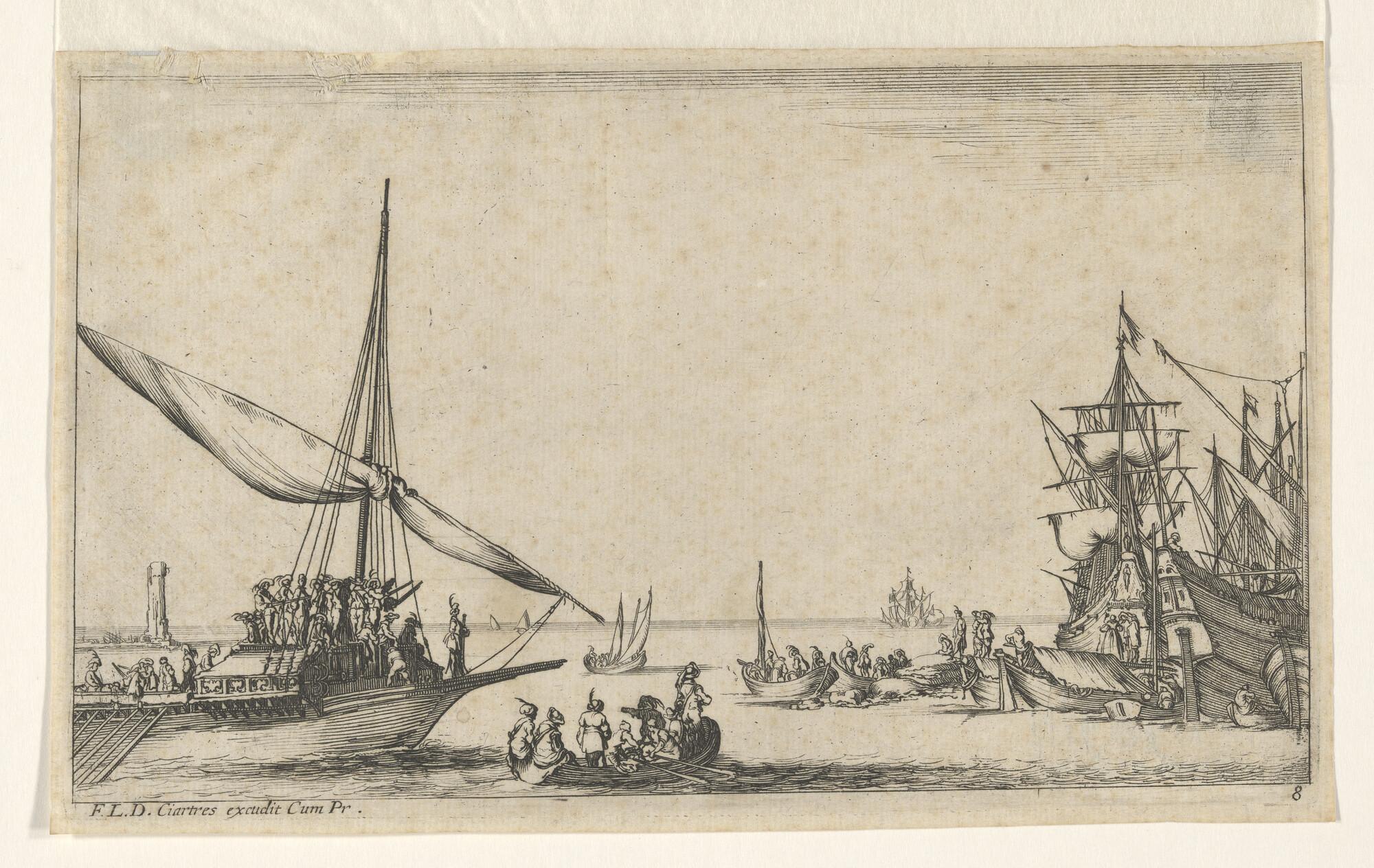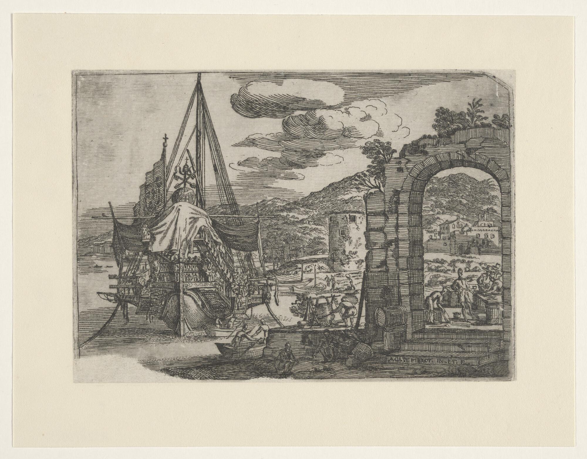 Scheepvaart op een rede: met rechts een oorlogsgalei