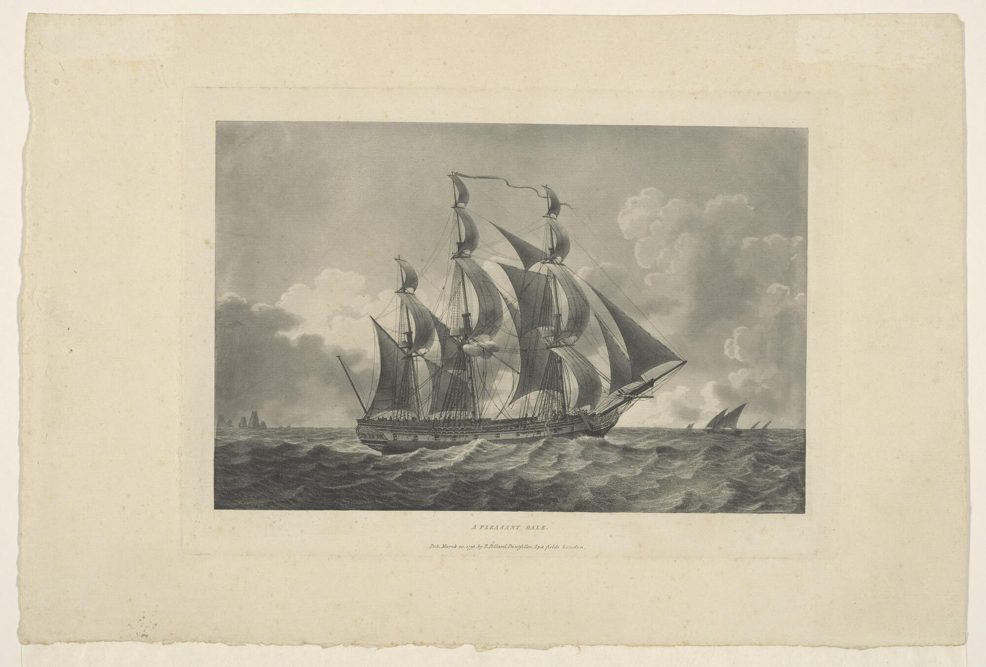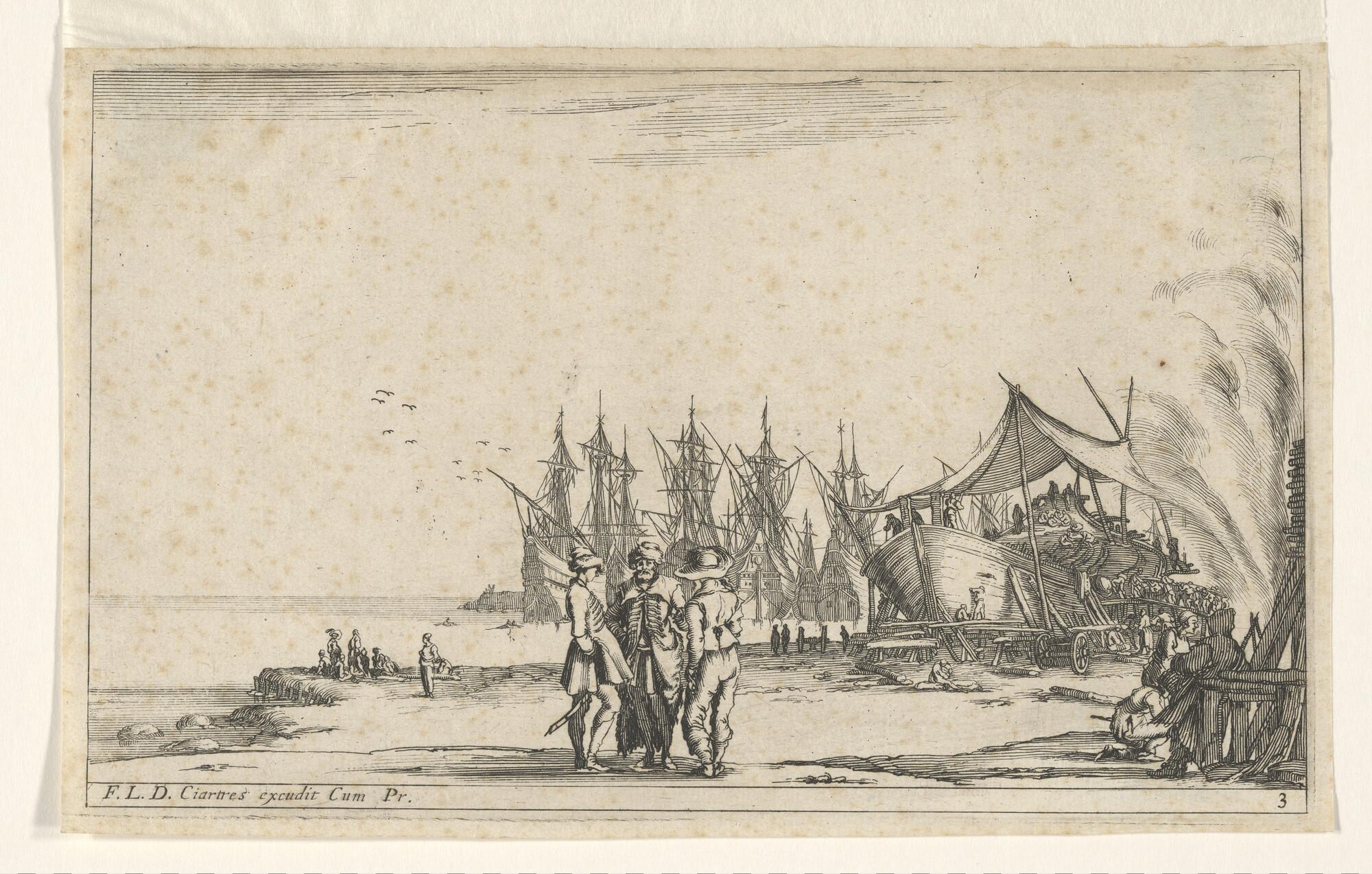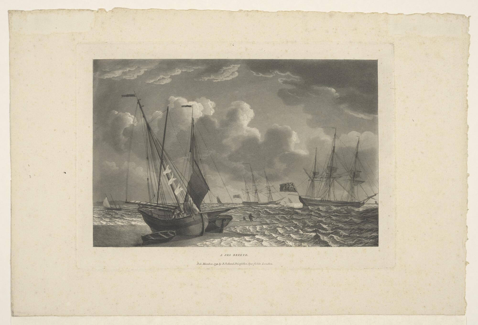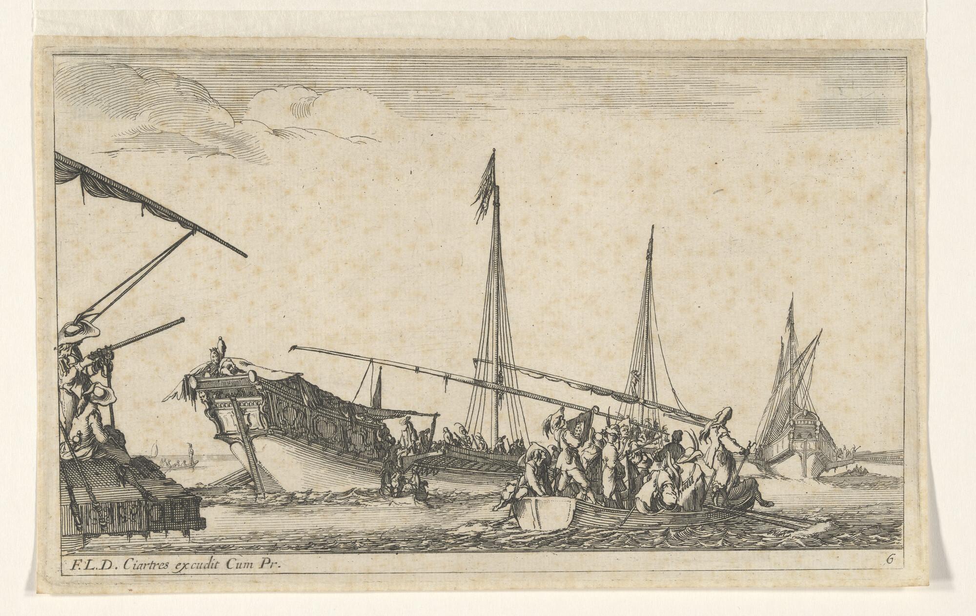 Scheepvaart op een rede met rechts een gedeelte van ...