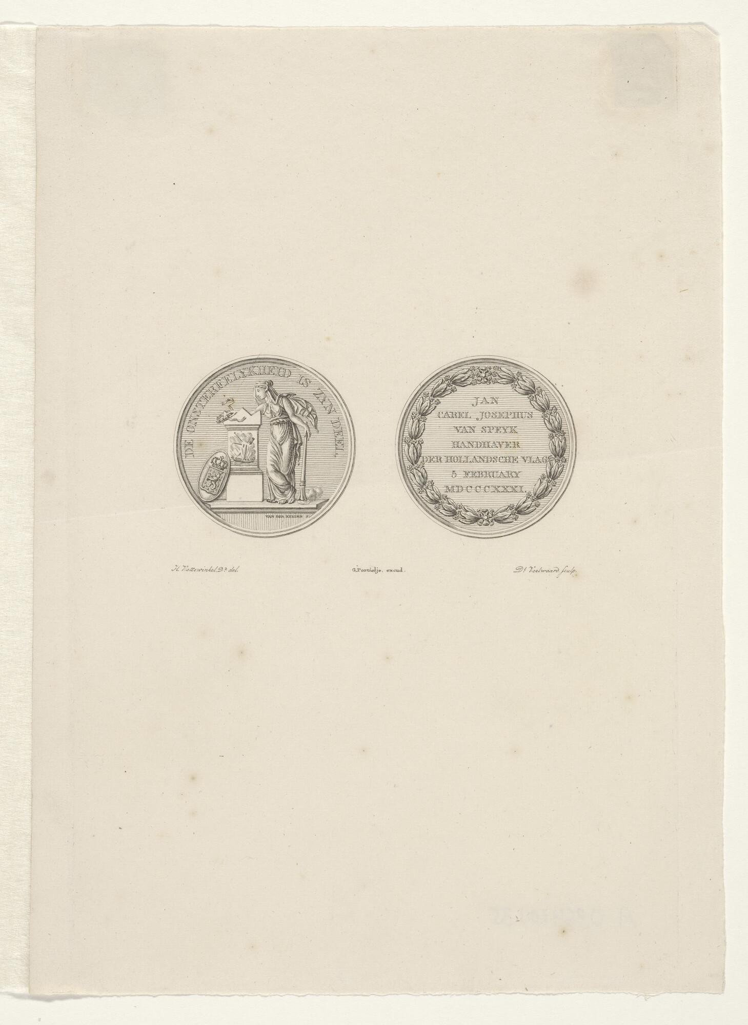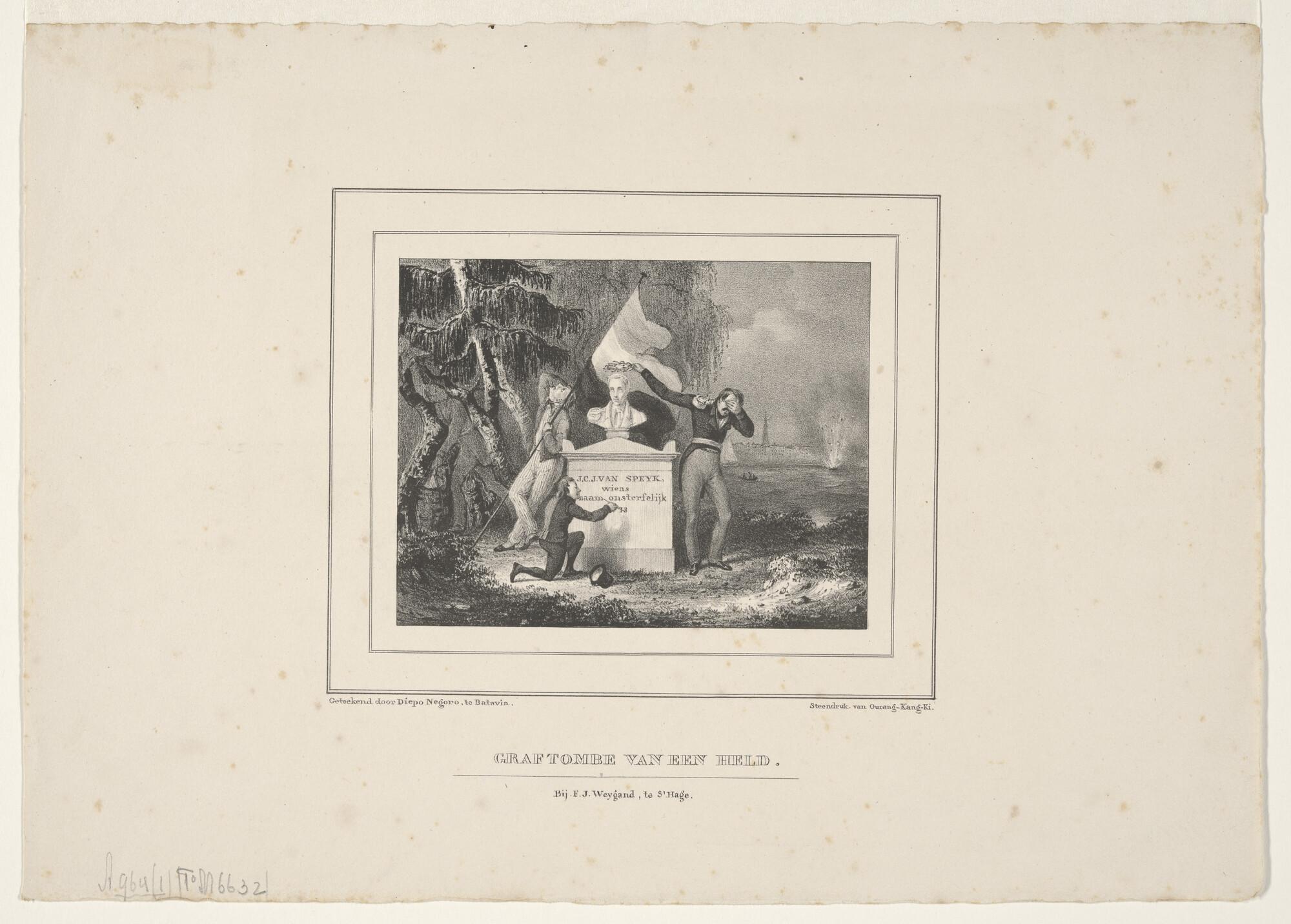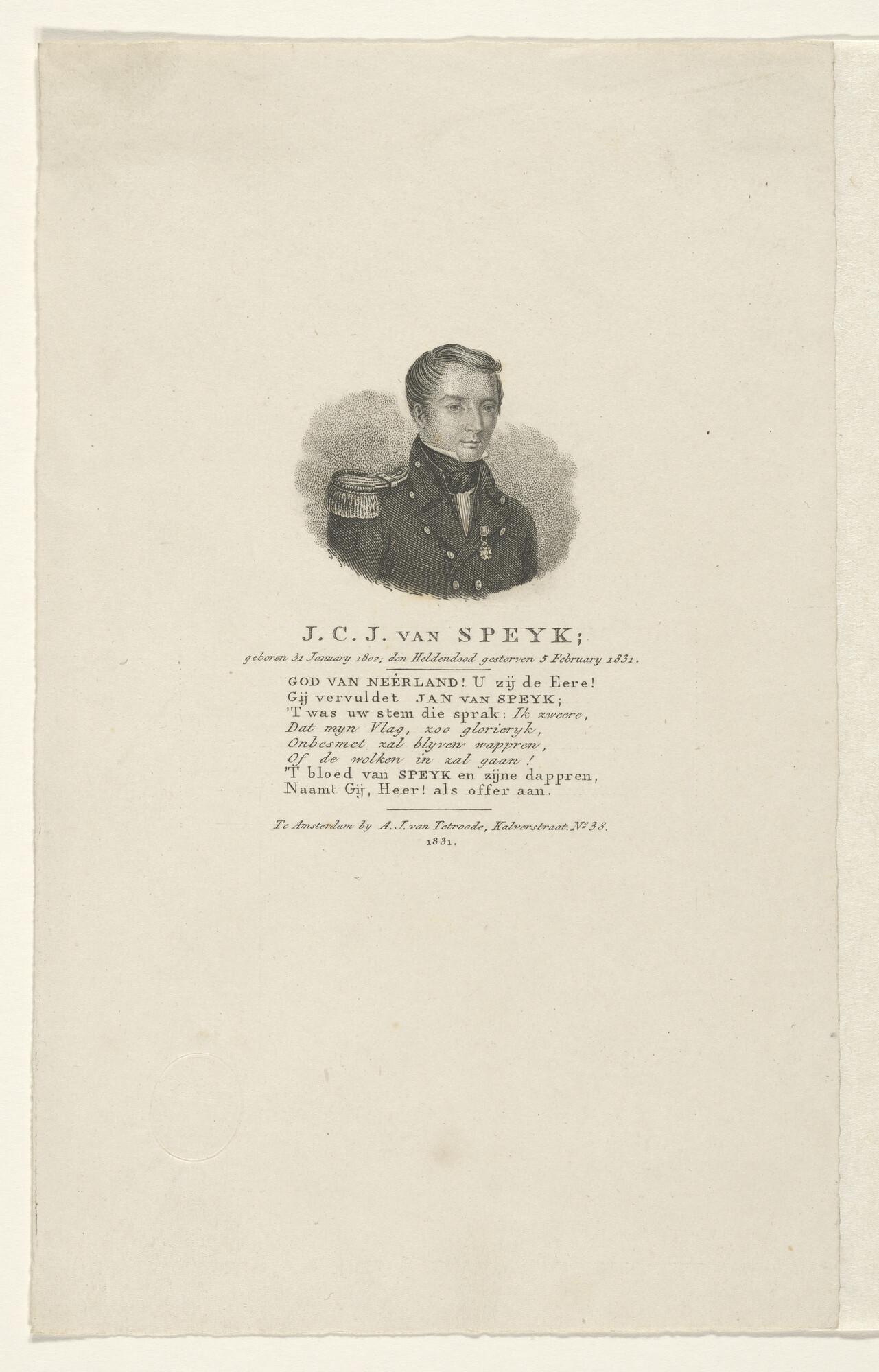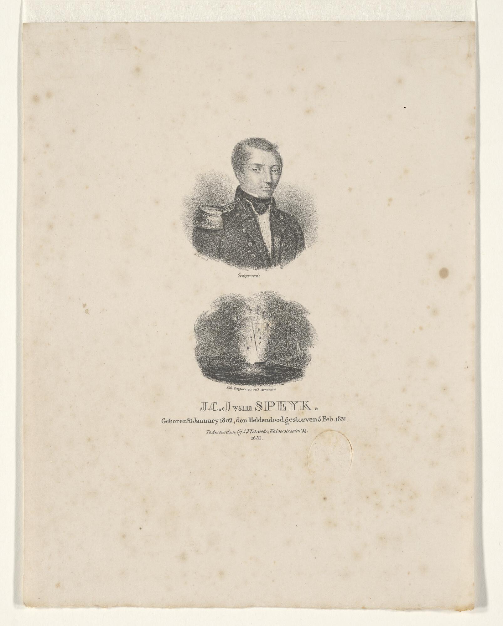Portret van J.C.J. van Speyk, met daaronder een lofd...
