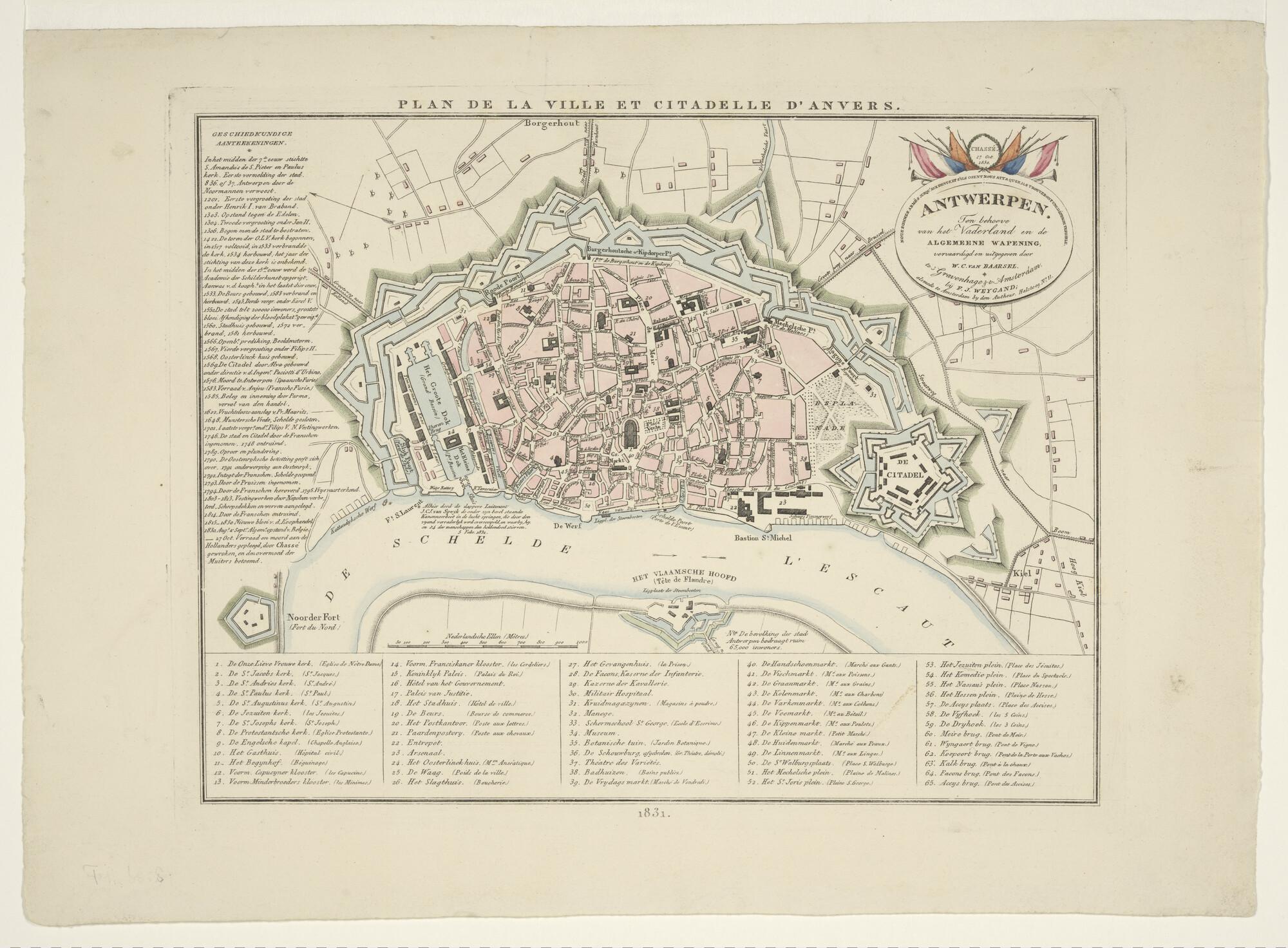 Plattegrond van Antwerpen: bovenaan de stad en Citadel