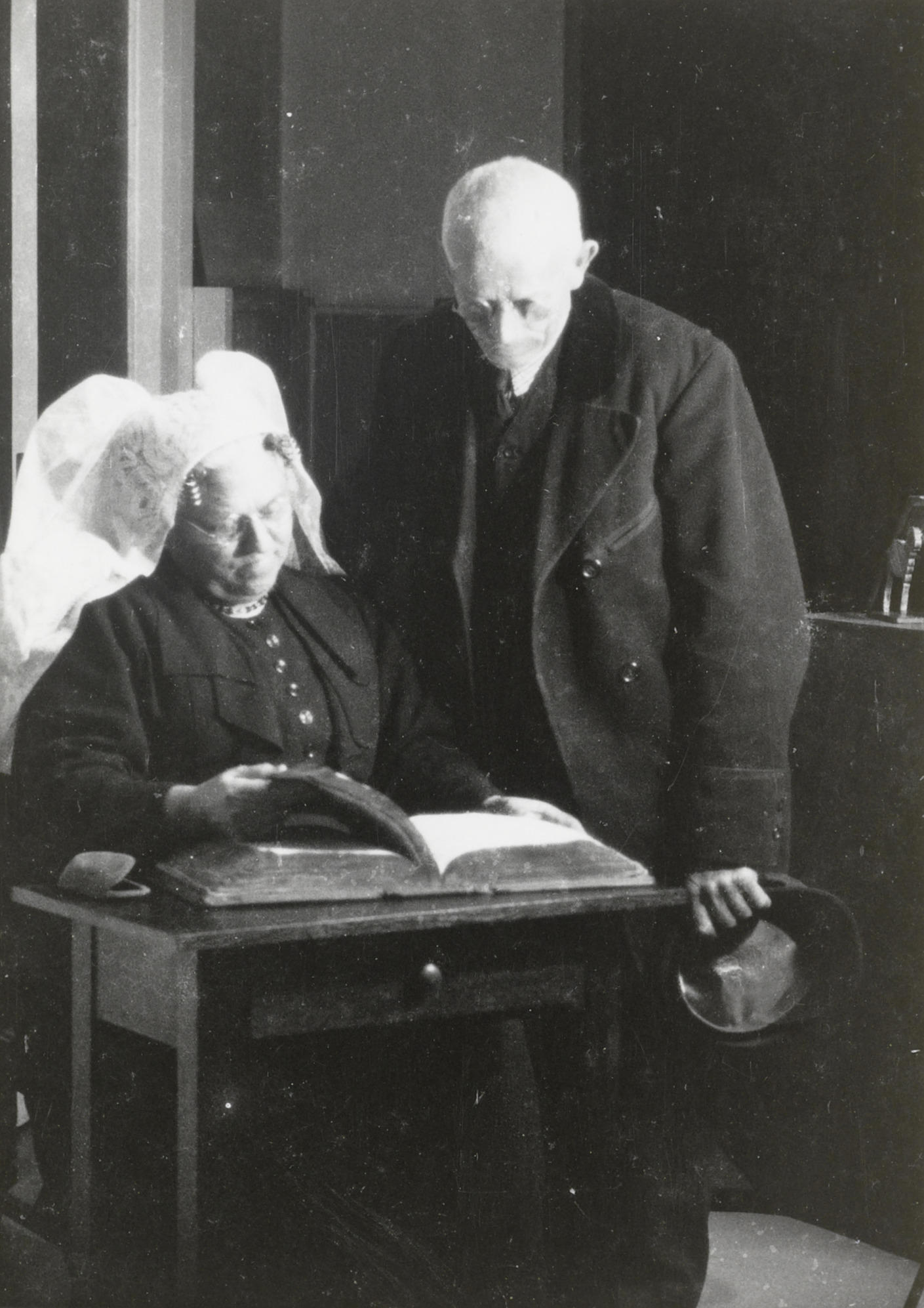 Vrouw en man in dracht van Noord-Beveland, 1900-1939...