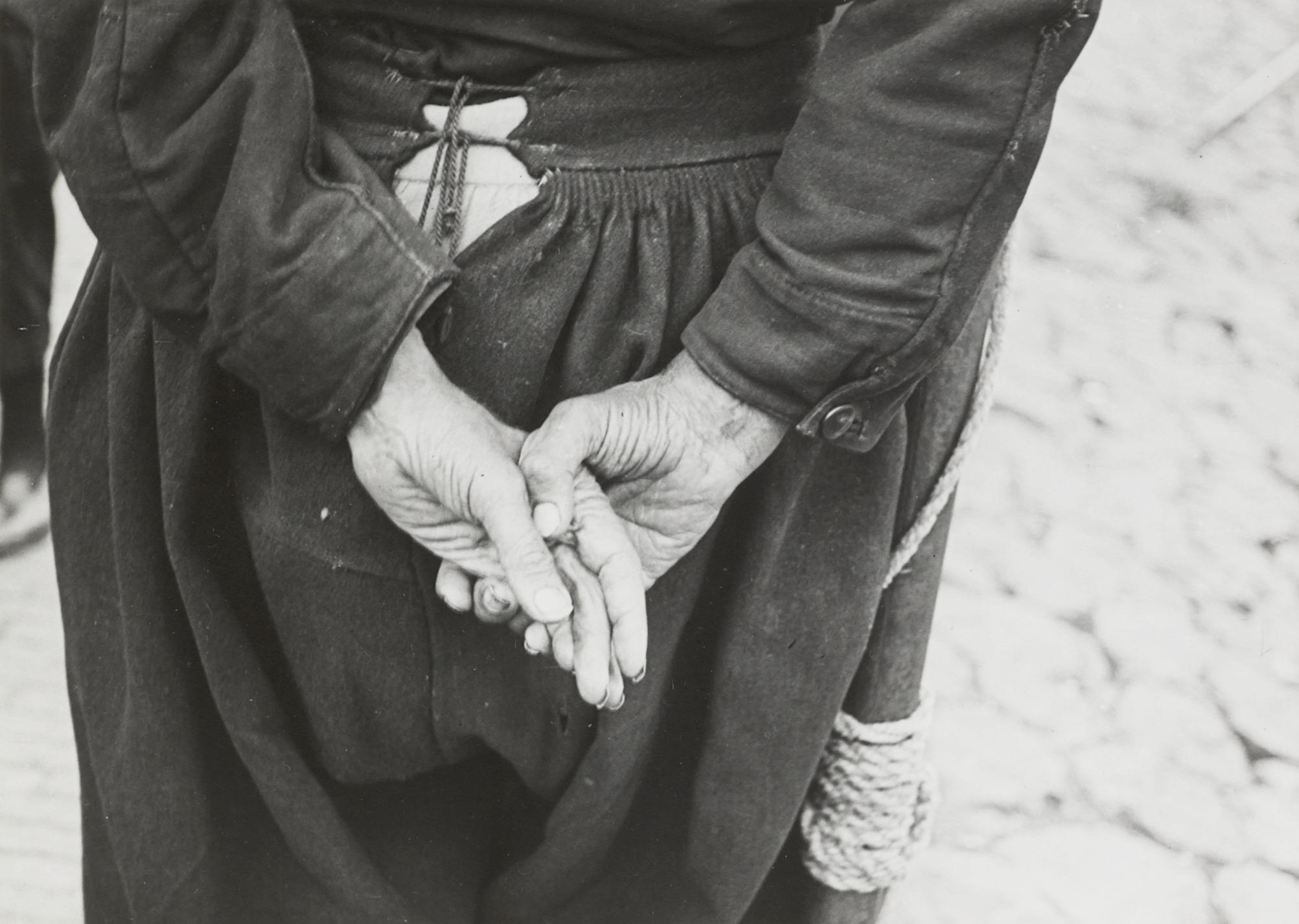Detail van de mannendracht, Volendam, 1934 (zwart-wi...