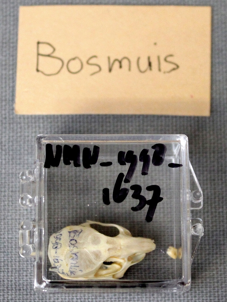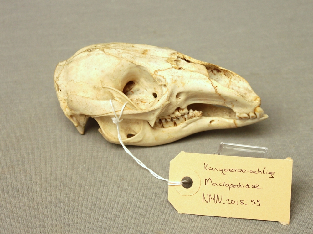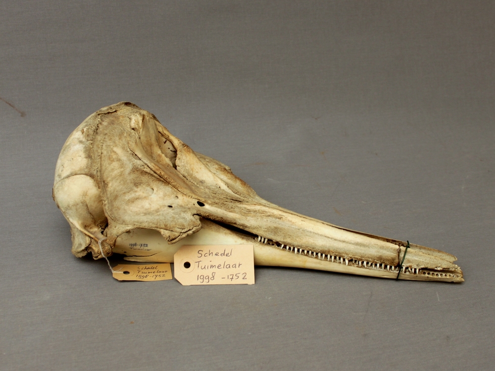 Tuimelaar; schedel met onderkaak; ontbrekende delen
