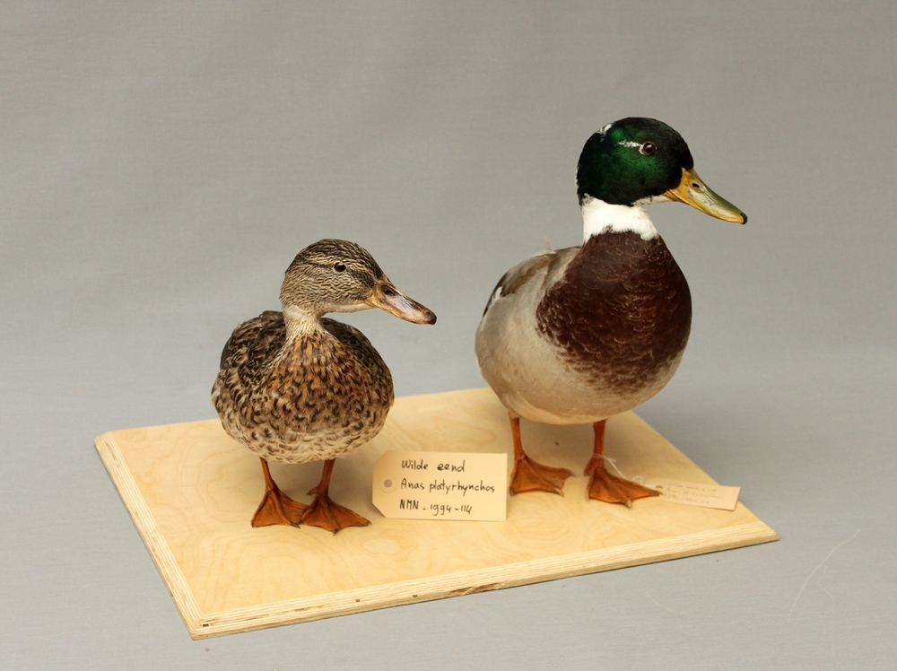 Wilde eend; met andere wilde eend op plank (NMN_1994...