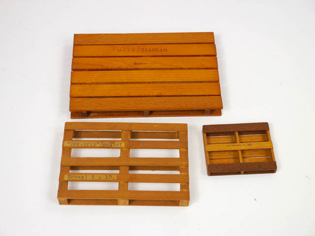 Twee modellen van miniatuur pallets van Hoza Zaandam