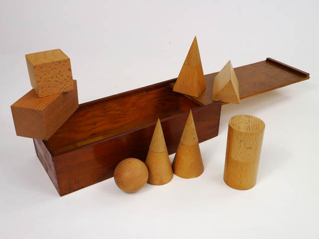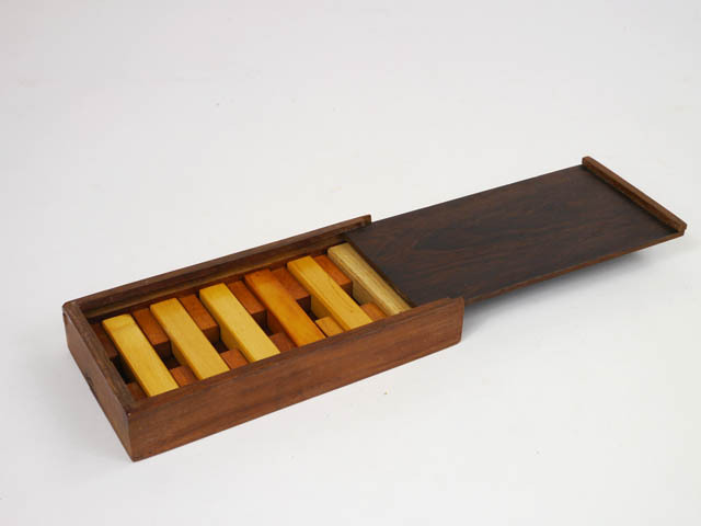 Houten kist met schuifdeksel met 8 geometrische figu...