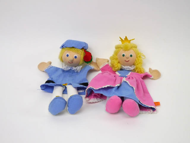 Acht sprookjesfiguren als poppenkastpop. Hans, Griet...