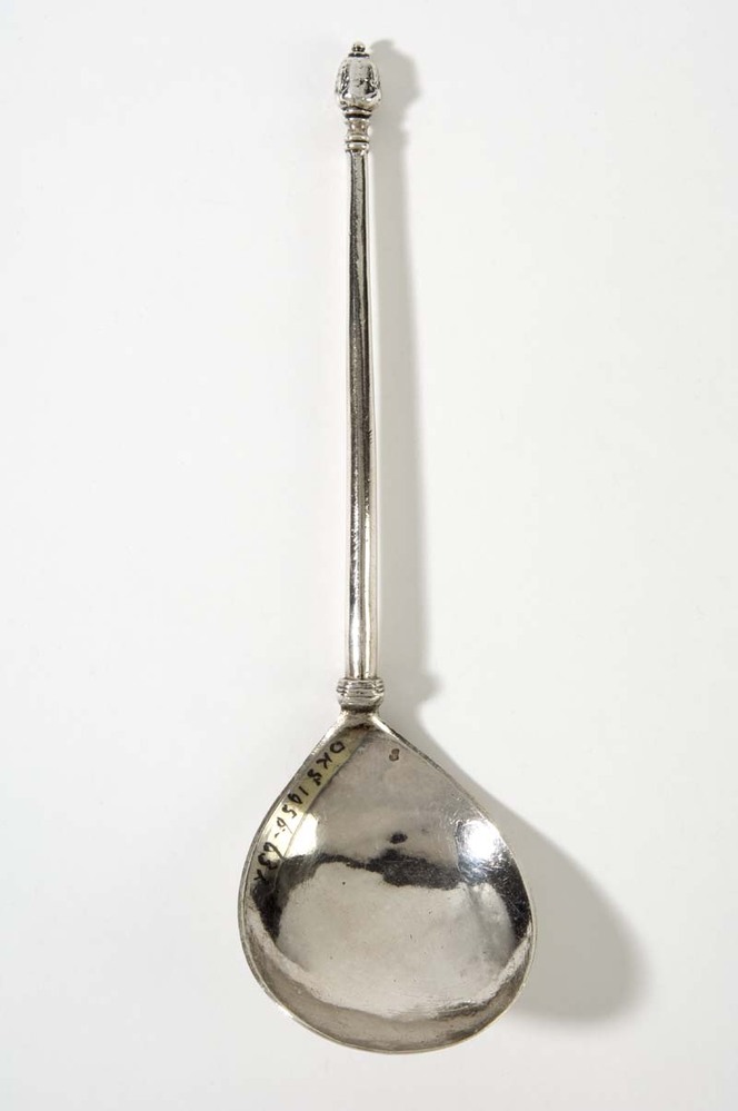 Lepel met bekroning pijnappel met knopje erop