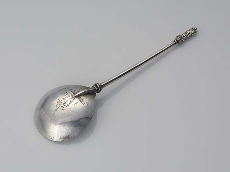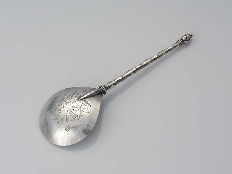 Huwelijkslepel met als bekroning pijnappel