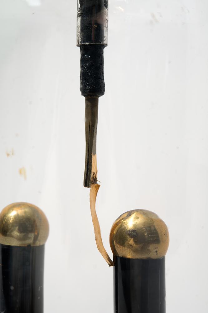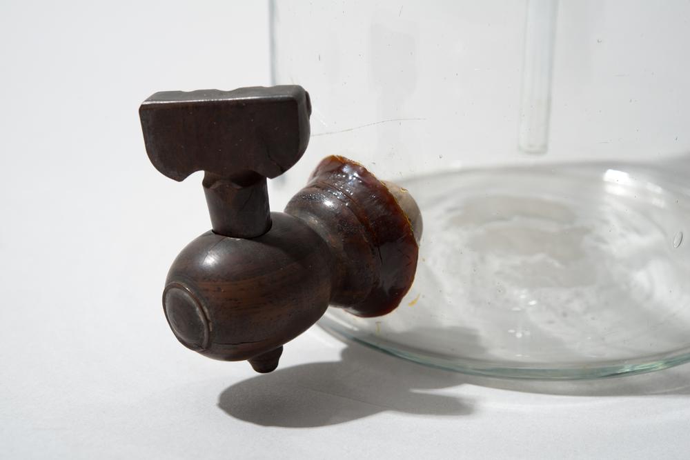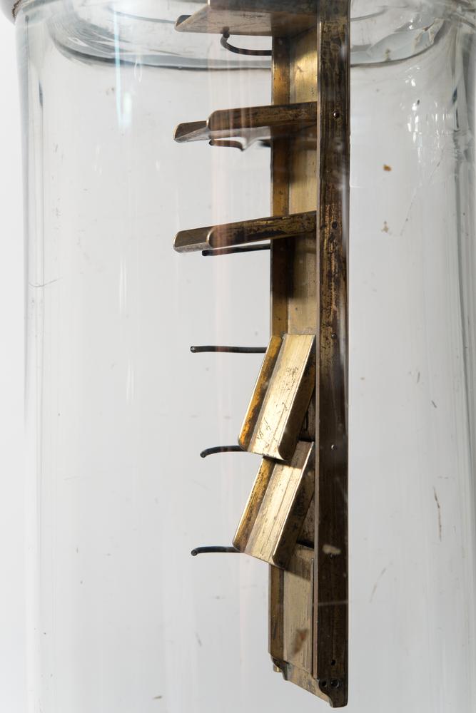 Glazen stolp bij dubbelwerkende luchtpomp