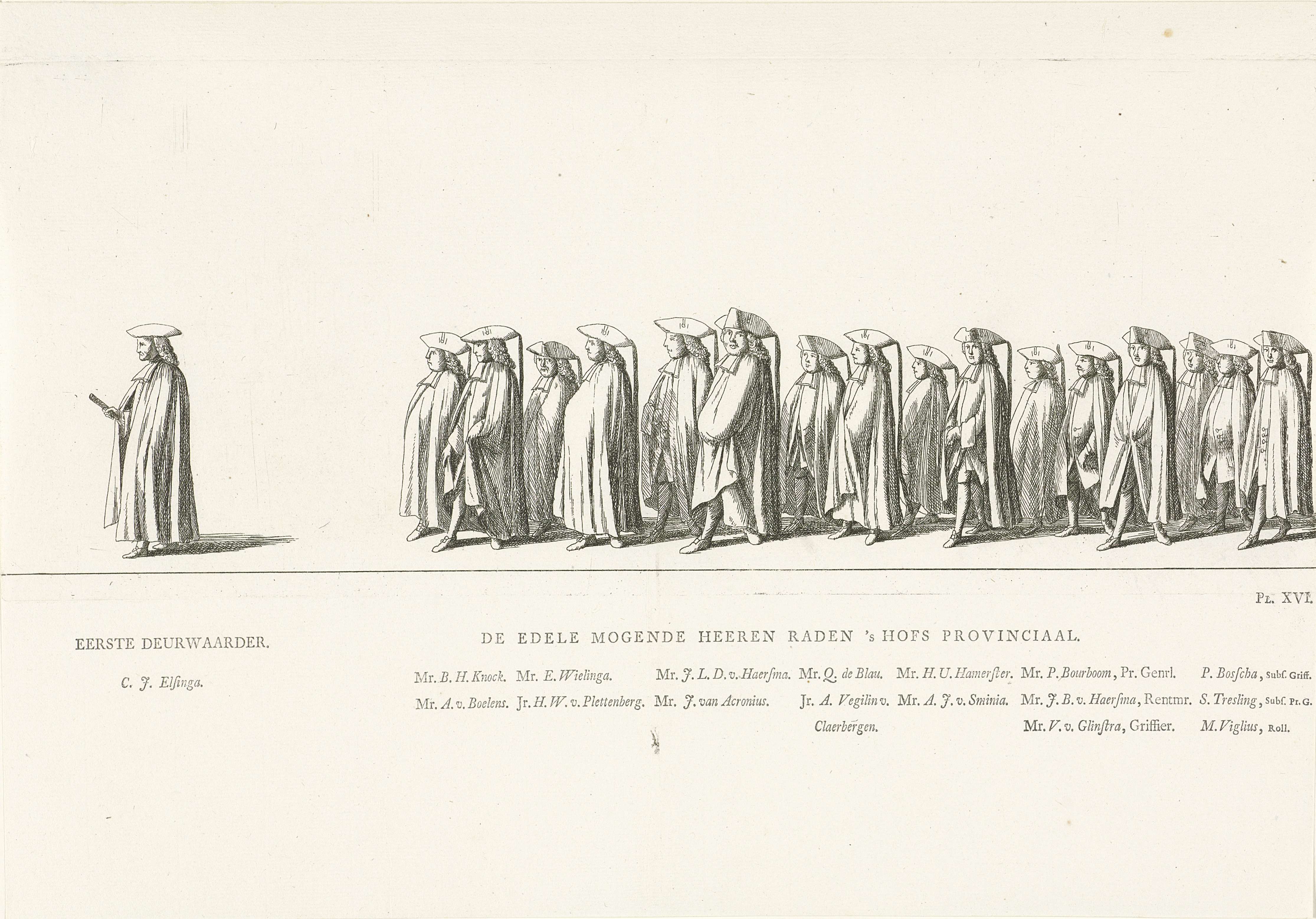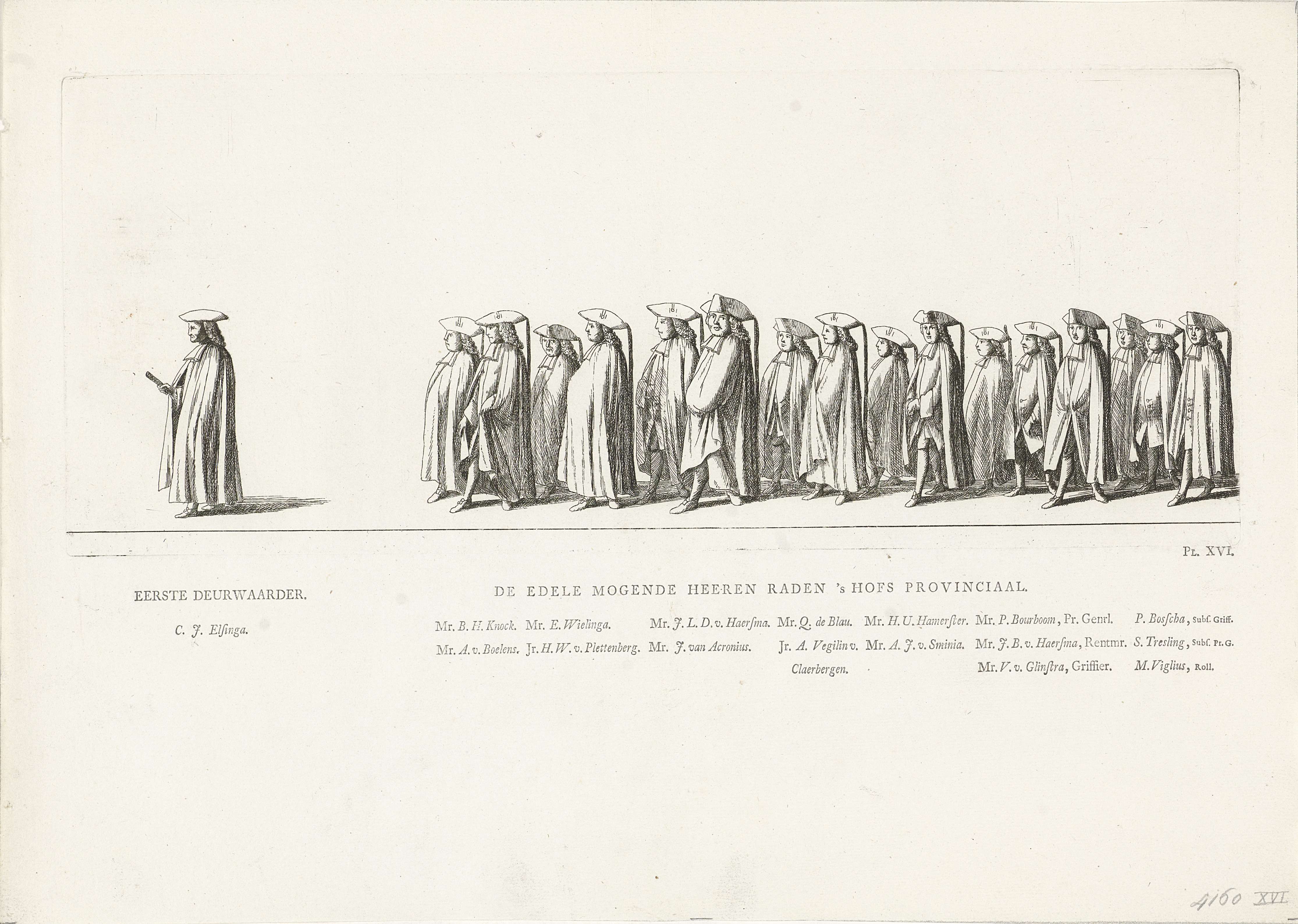 Leden van het Hof van Friesland in de begrafenisstoe...