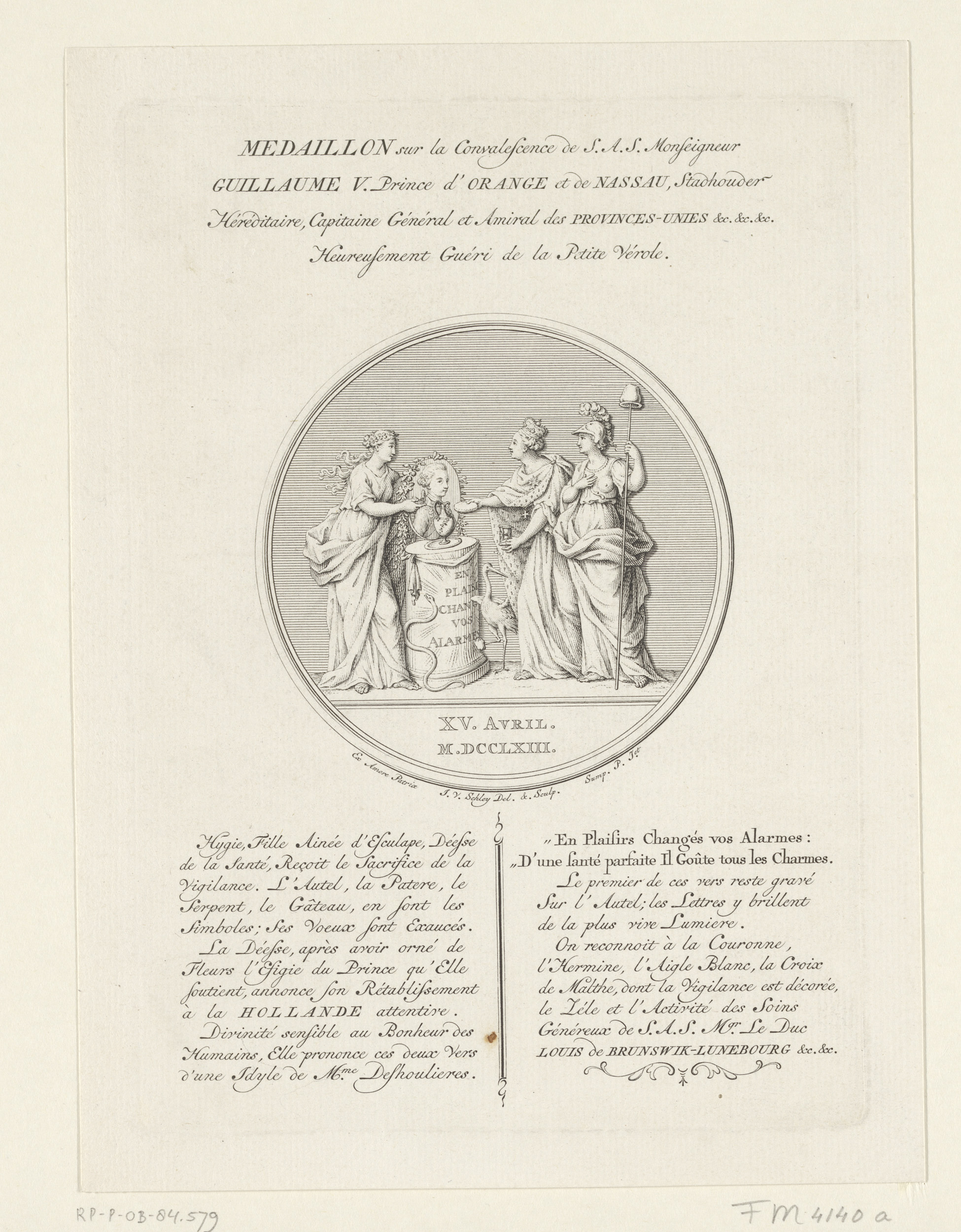 Medaillon op het herstel van Willem V na ziekte, 1763