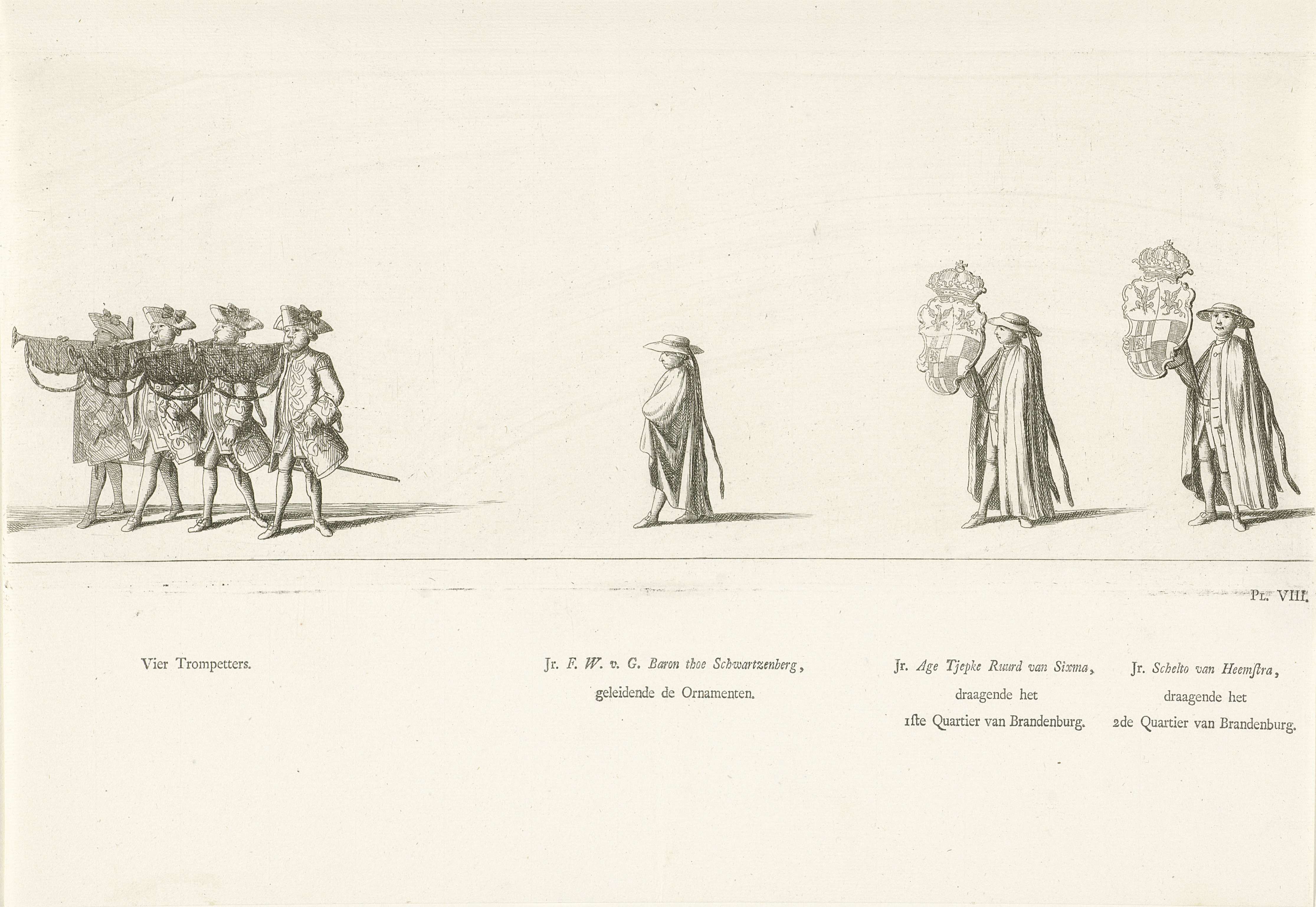 Hofhouding en muzikanten in de begrafenisstoet van p...