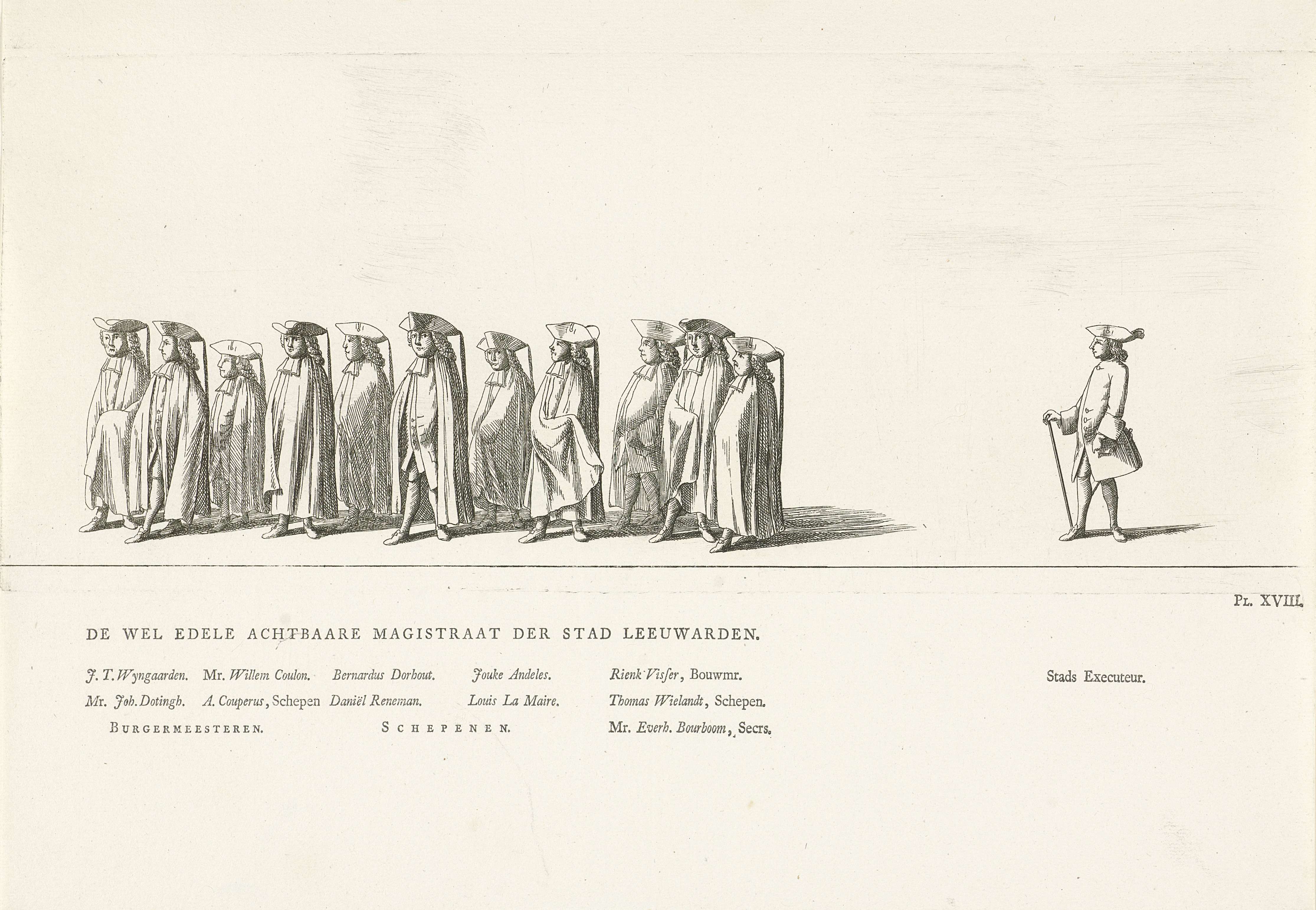 Magistraat van Leeuwarden in de begrafenisstoet van ...
