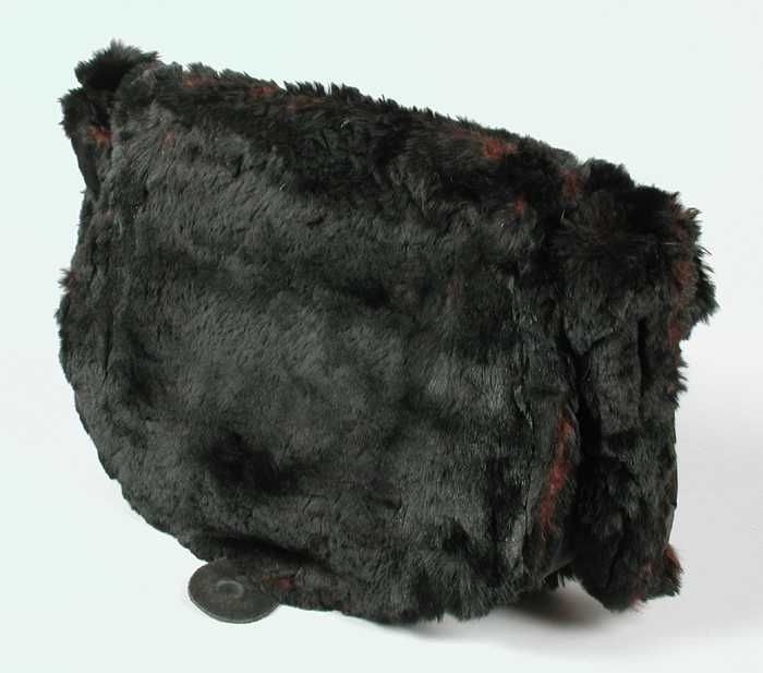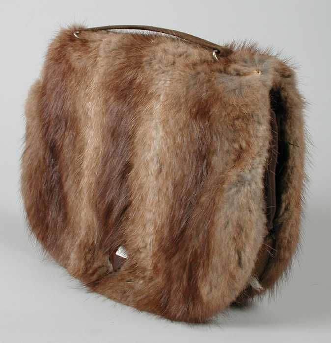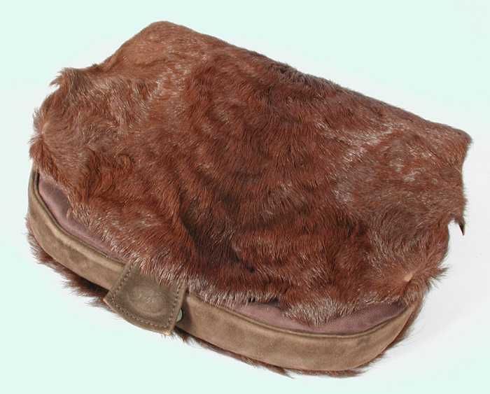 Mof en handtas van ruwharig bruin bont en suède met ...