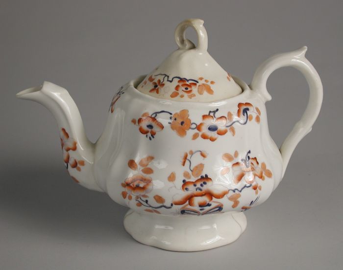 Theepot met losse deksel, handbeschilderde bloemmoti...