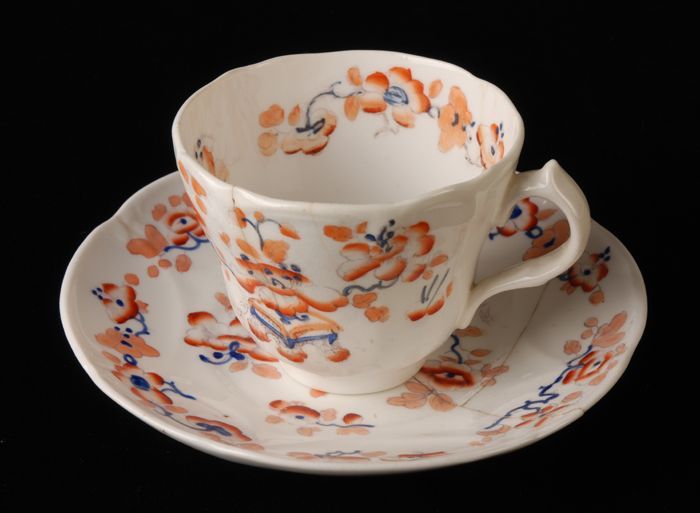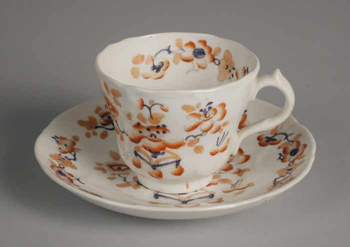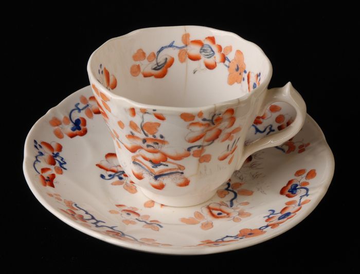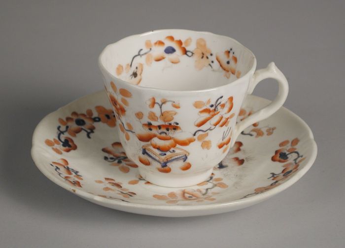 Kop en schotel met handbeschilderde bloemmotieven in...