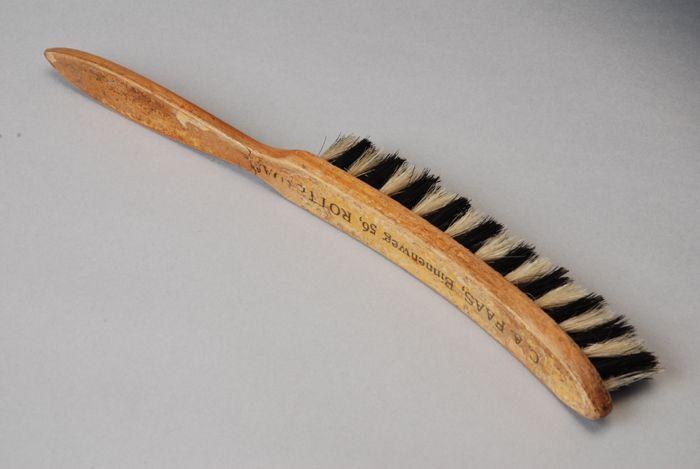 Hoedenborstel met opschrift "C.A. Faas, Binnenweg 56...