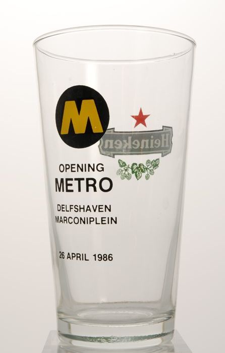 Bierglas (vaasje) met "OPENING METRO DELFSHAVEN MARC...