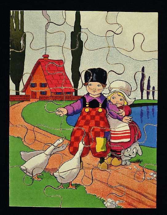 Legpuzzel met voorbeeld: jongen en meisje met ganzen