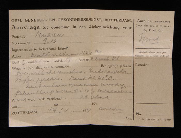 Enveloppe met opmerking "Spoed", hierin formulier vo...