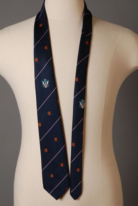 Stropdas, zelfbinder, van zijde (?), donkerblauw met...