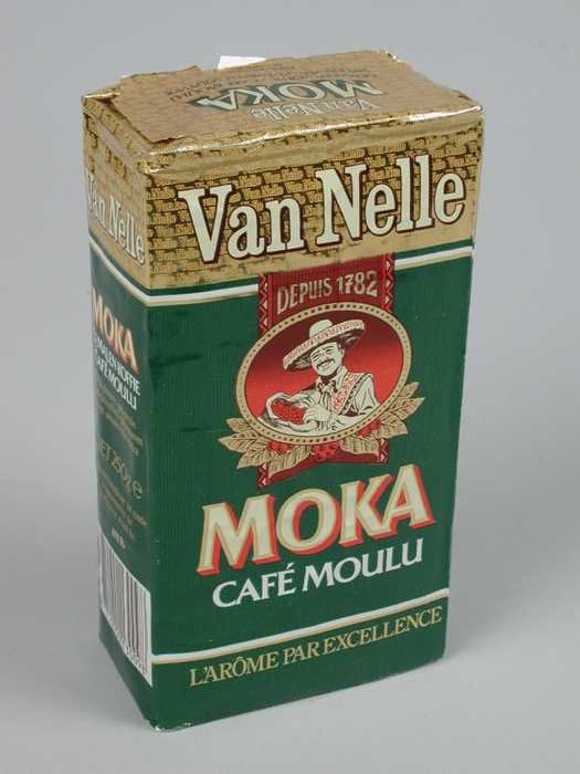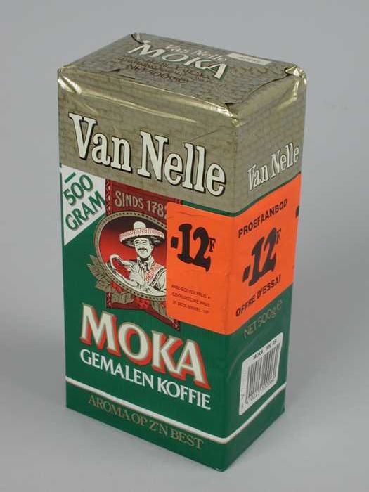 Groen en goud, papieren pak VAN NELLE KOFFIE, moka, ...