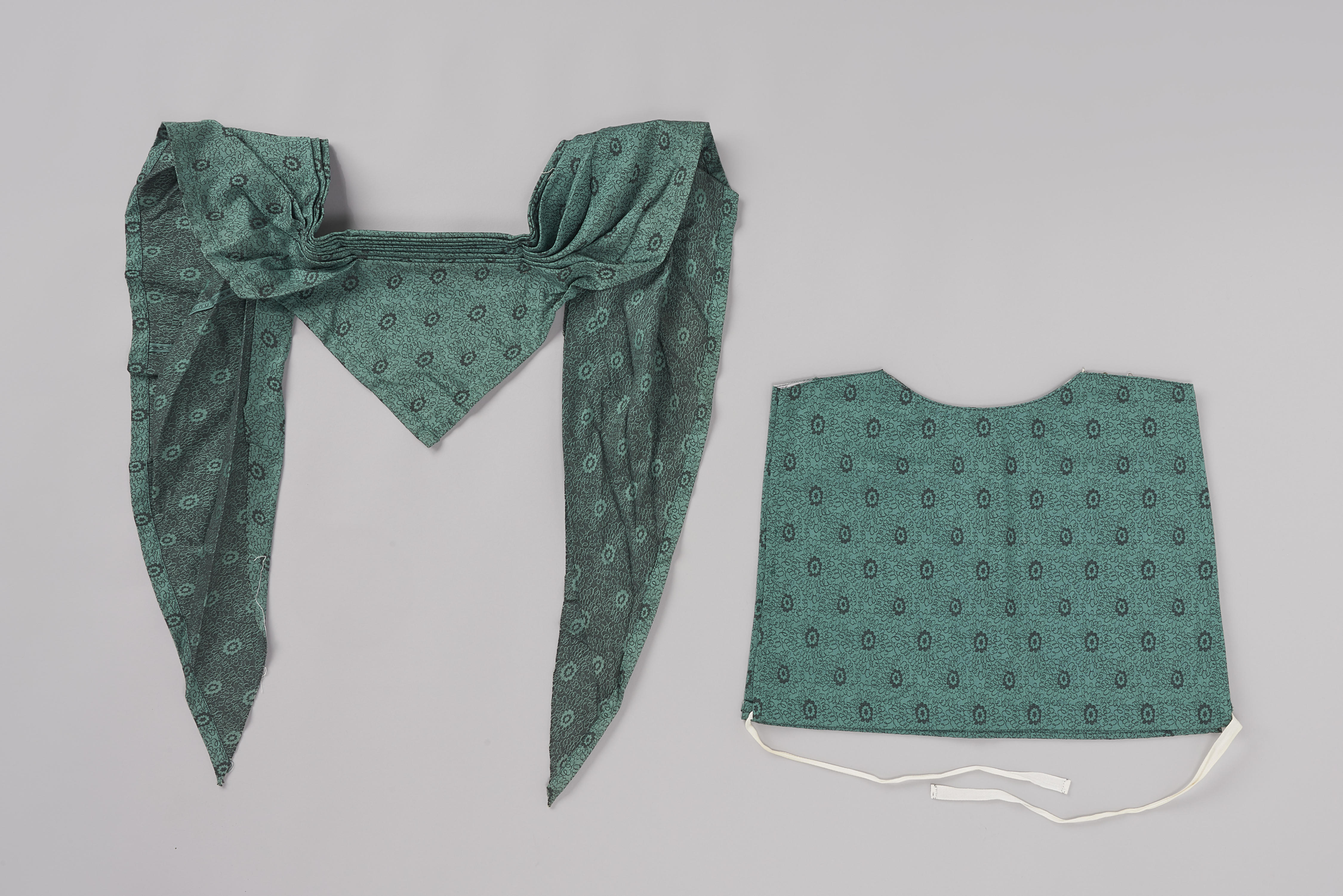 Beuk en opgemaakte doek met butahmotieven, Wolphaart...