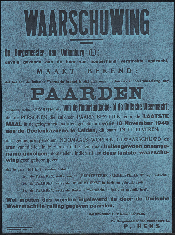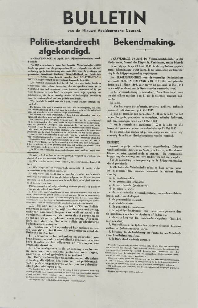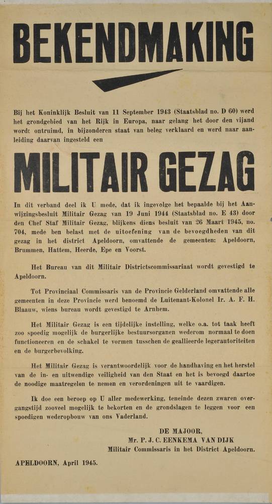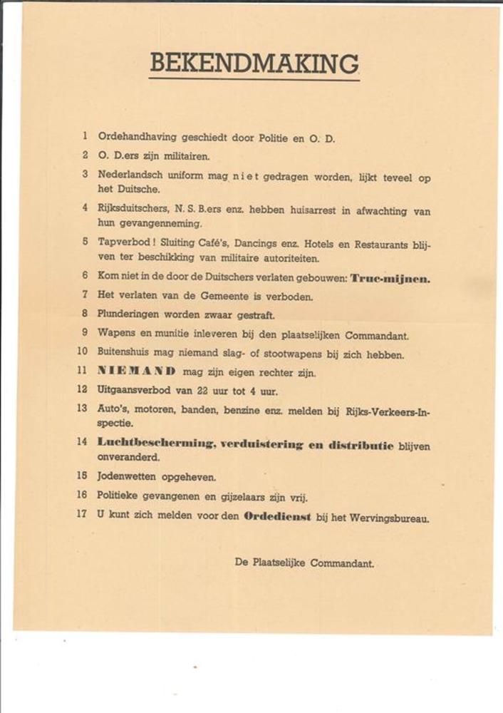 Bekendmaking, plaatselijke Commandant BS kort na de ...