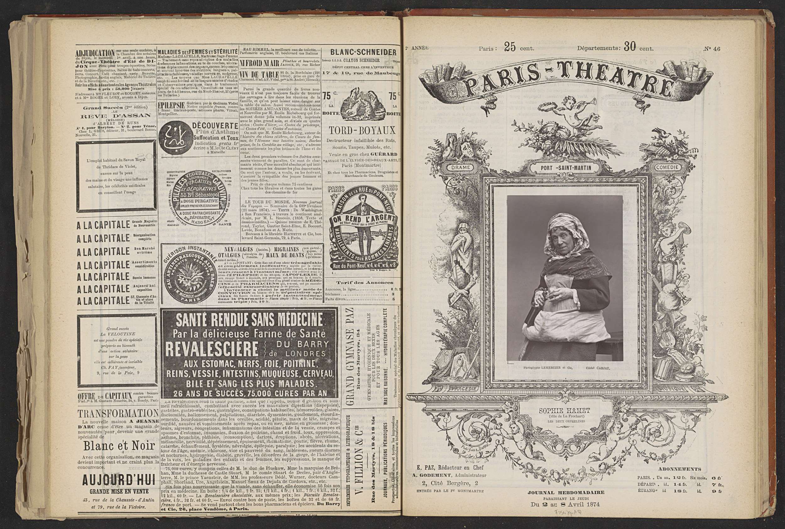 Portret van Angele Moreau als Louise in Les Deux Orp...