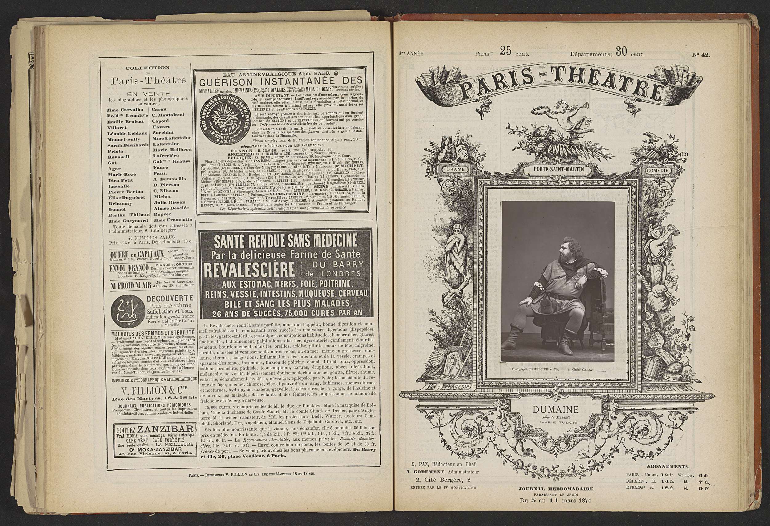 Portret van Dumaine als Gilbert in Marie Tudor