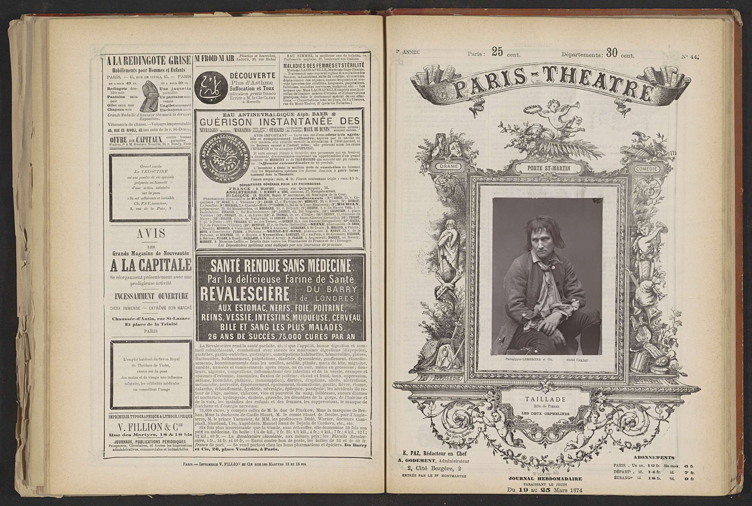 Portret van Paul Félix Taillade als Pierre in Les De...