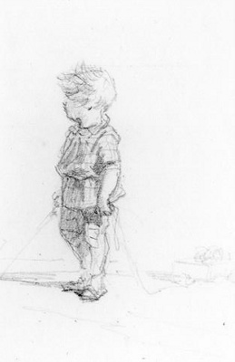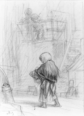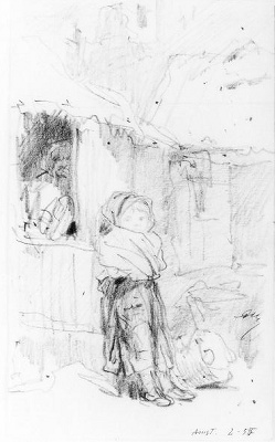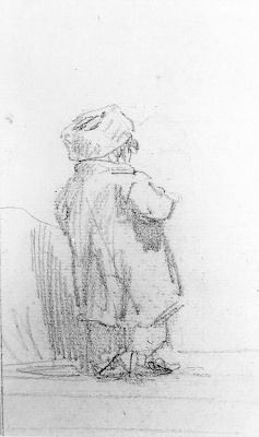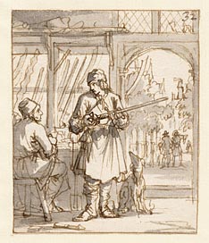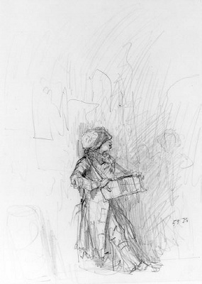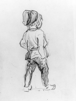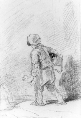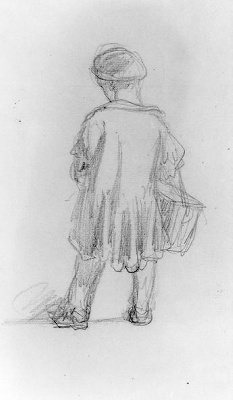 Jongen met Orgeltje(?) op rug gezien