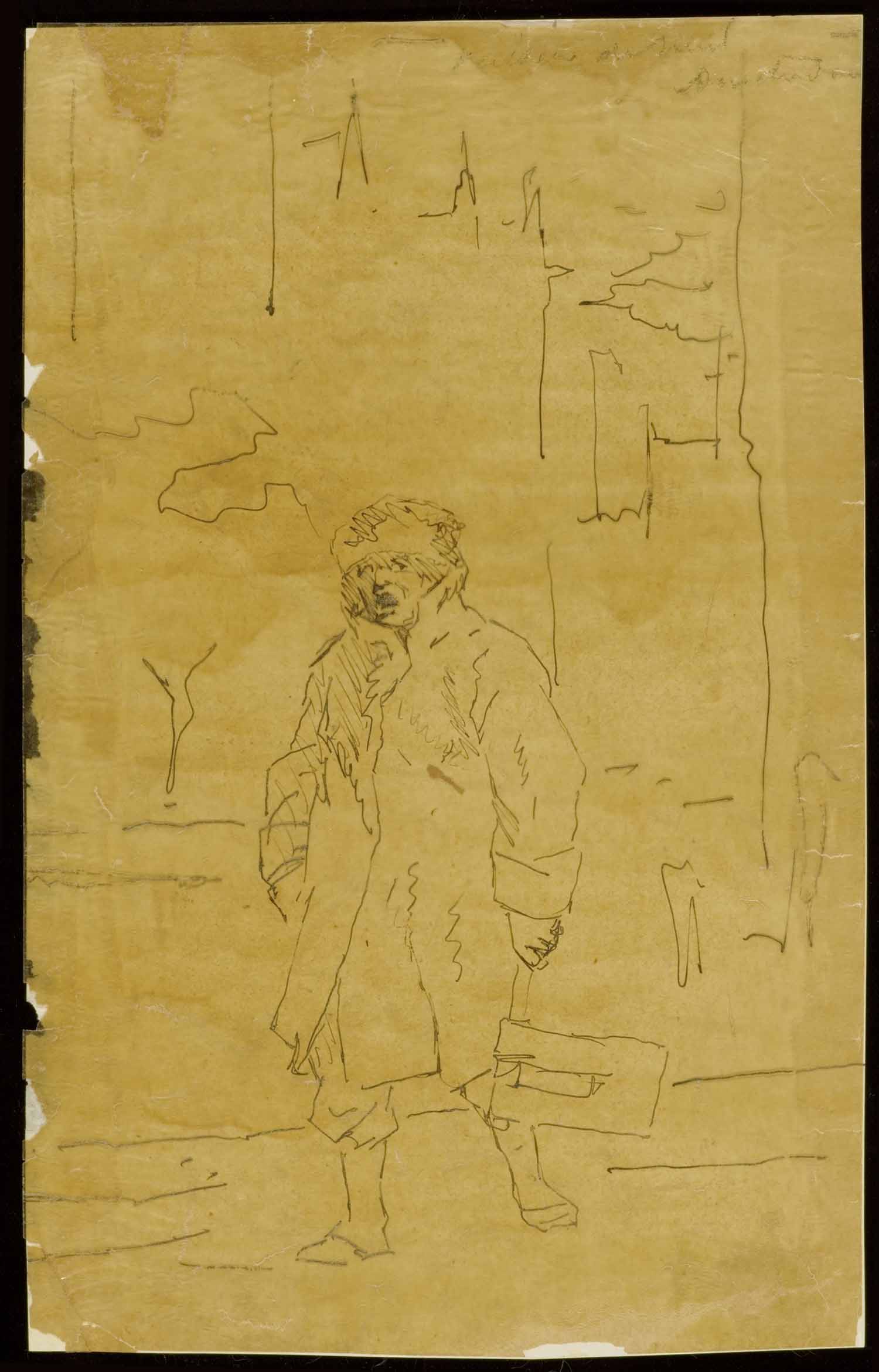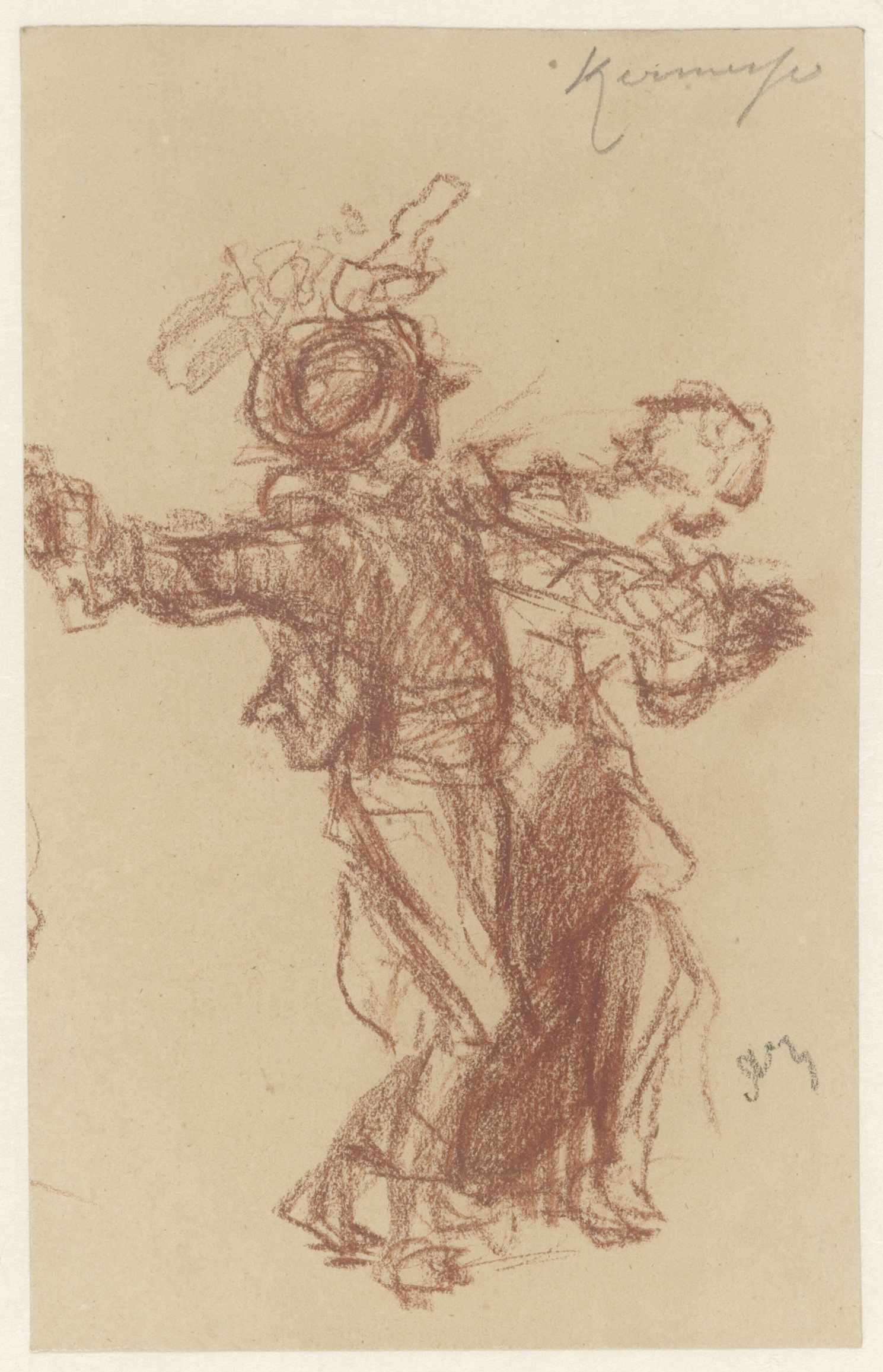 Twee caricaturale figuren (recto). Portret van een m...