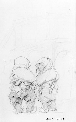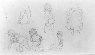 Studieblad met kinderen en vrouwenkoppen (recto). Ki...