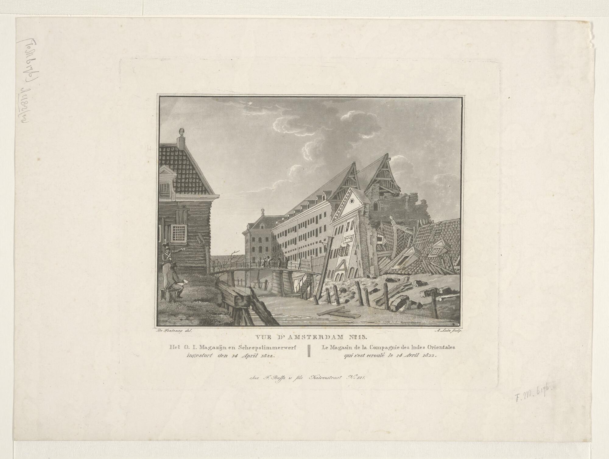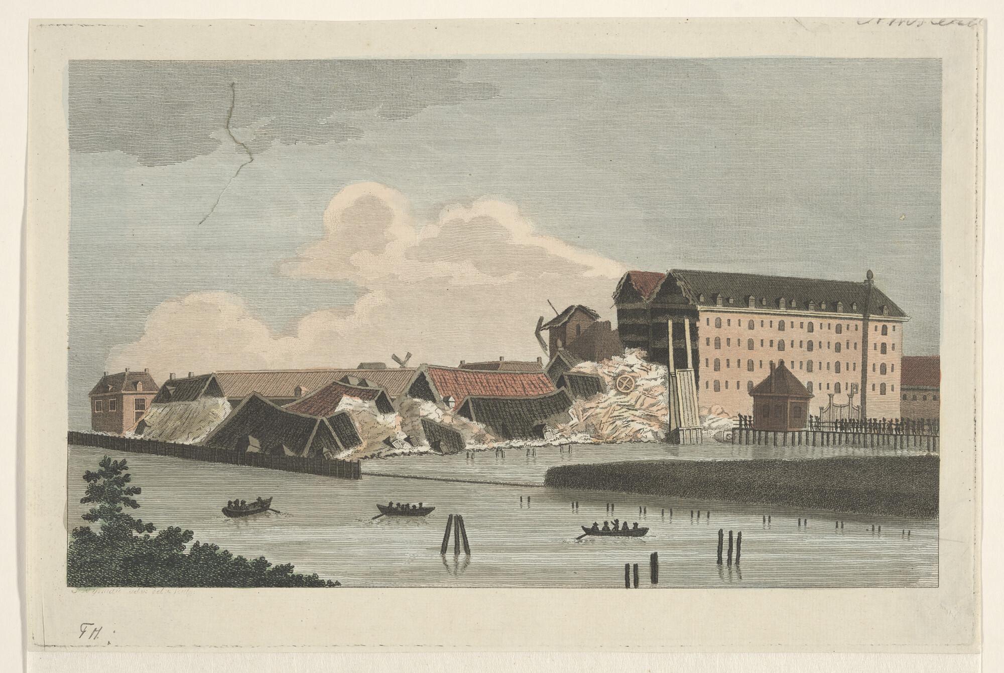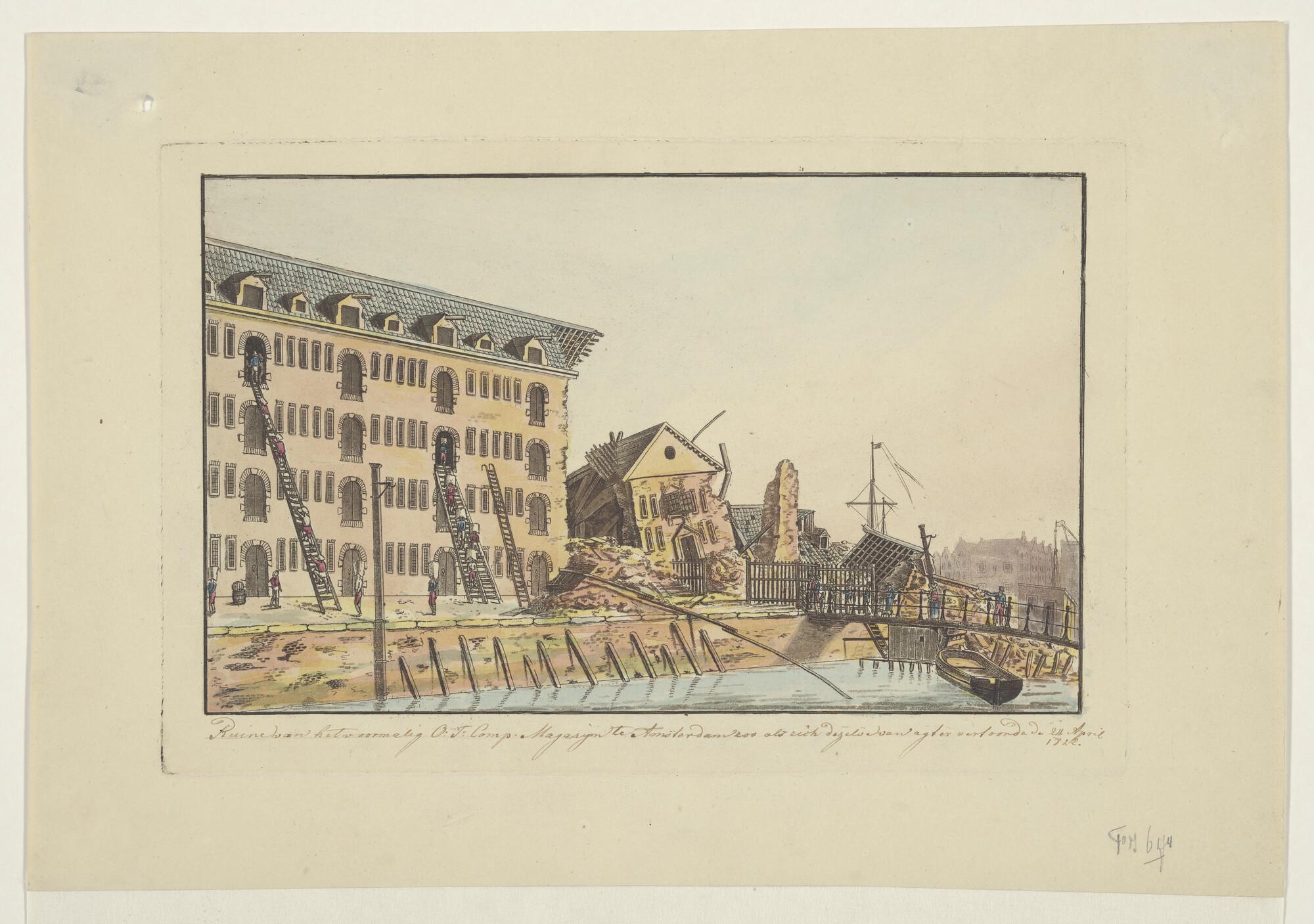 Ruïne van het VOC-magazijn te Amsterdam, na de insto...