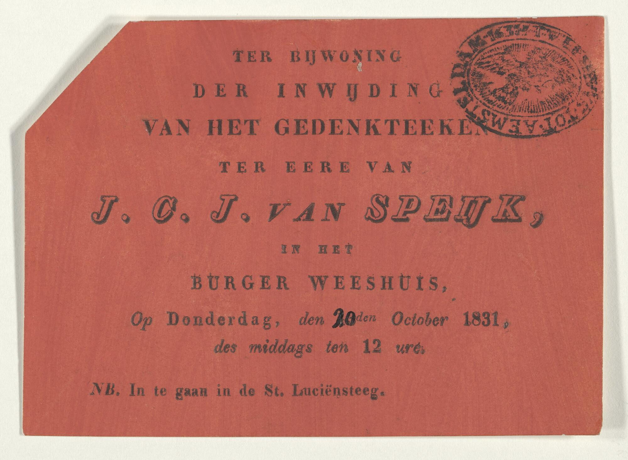 Rood toegangsbewijs ter bijwoning van de inwijding v...