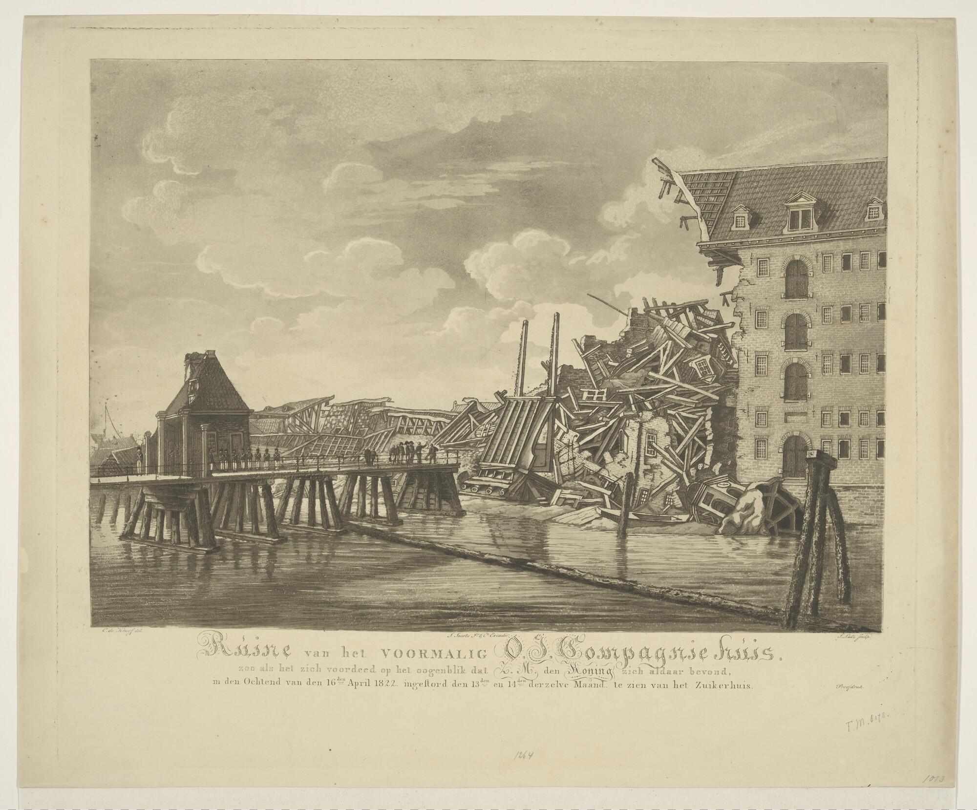 Het VOC-magazijn te Amsterdam, voor de instorting in...