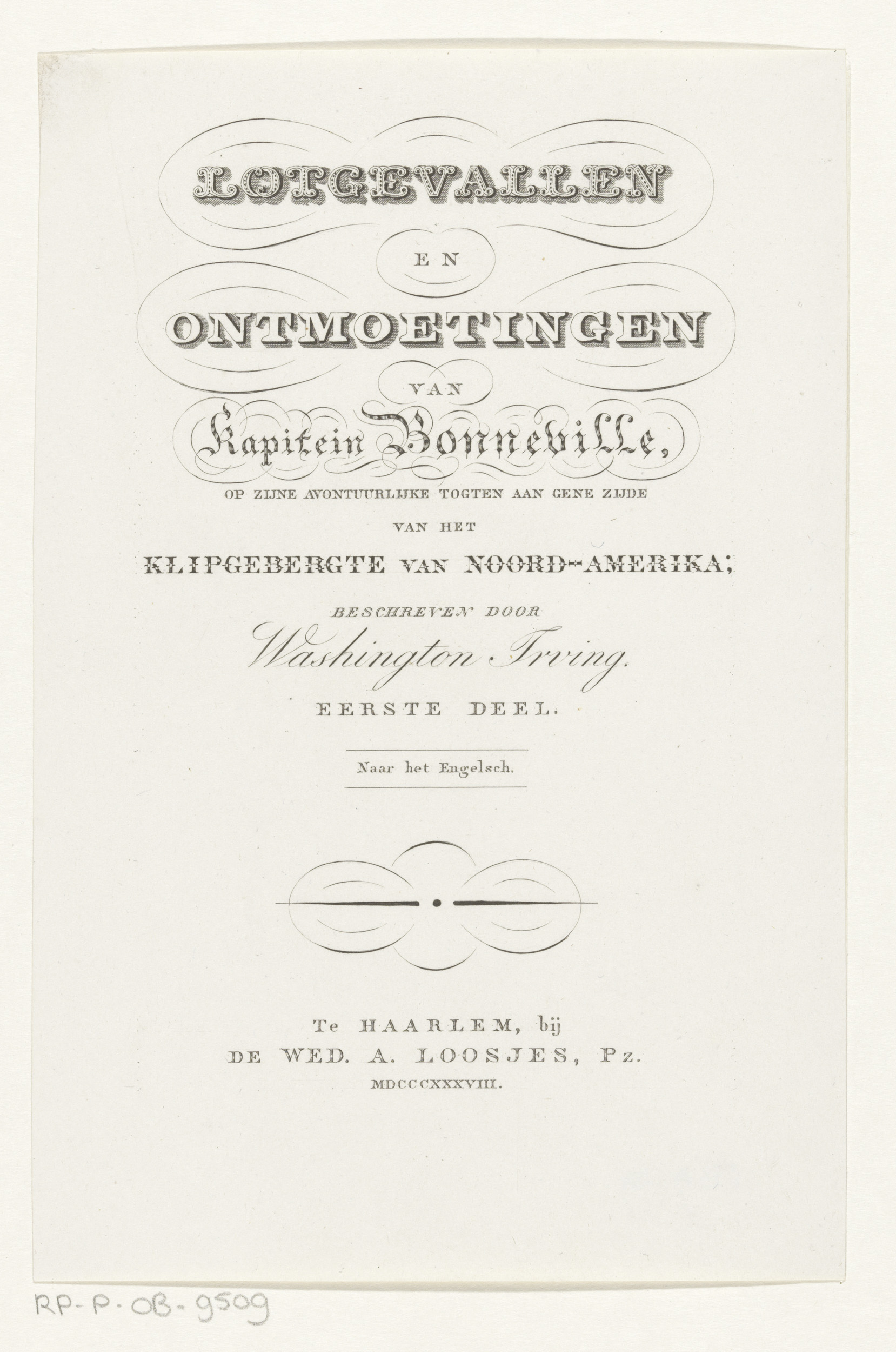 Titelpagina voor: Washington Irving, Lotgevallen en ...