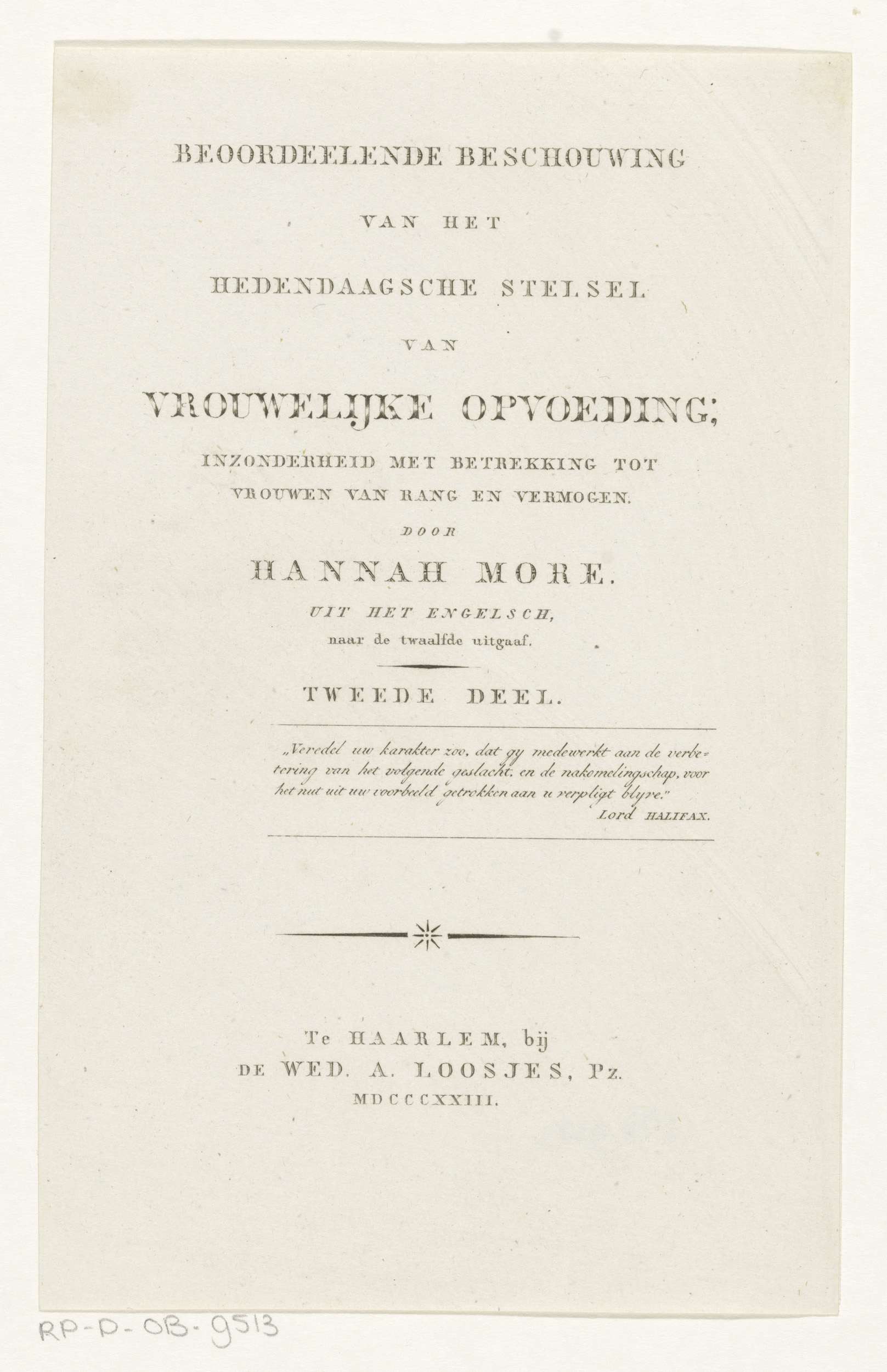 Titelpagina voor: Hannah More, Beoordeelende beschou...
