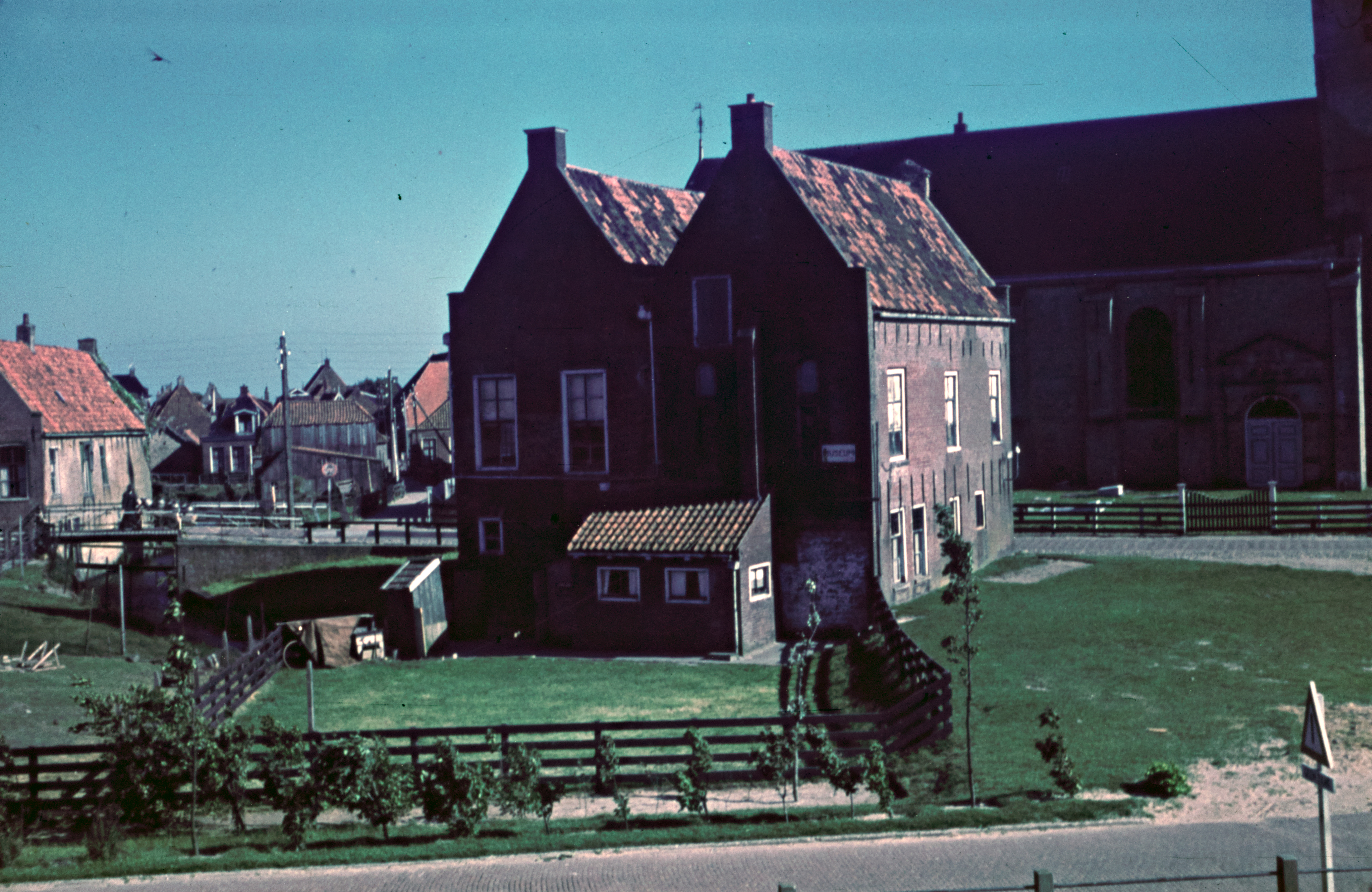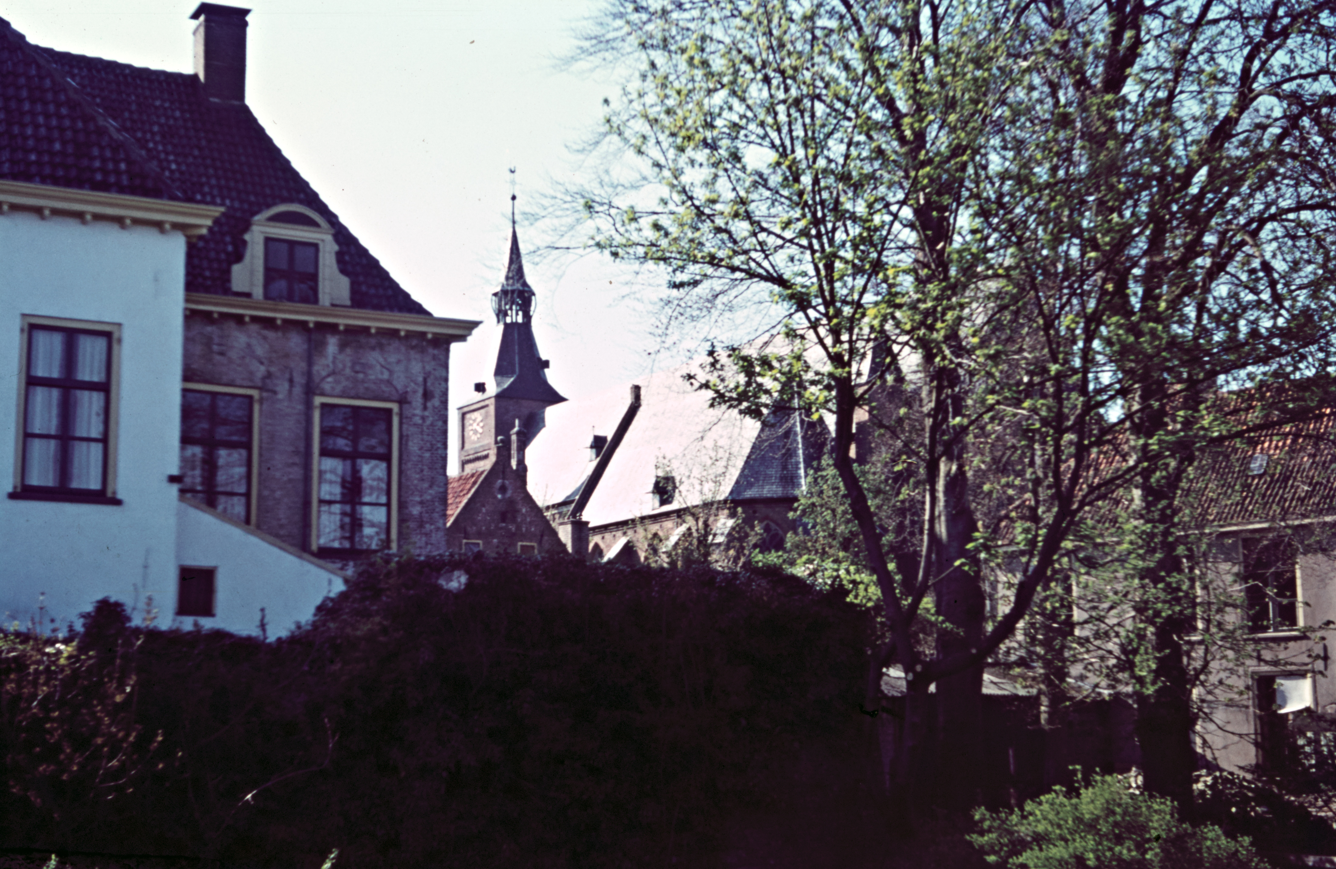 Huizen aan straat met toren van de Herv. kerk