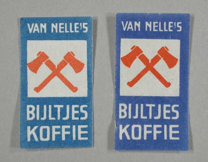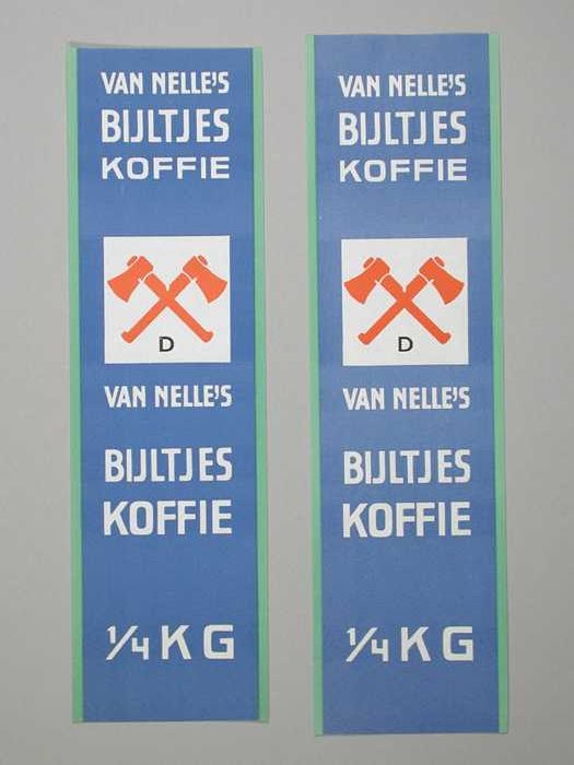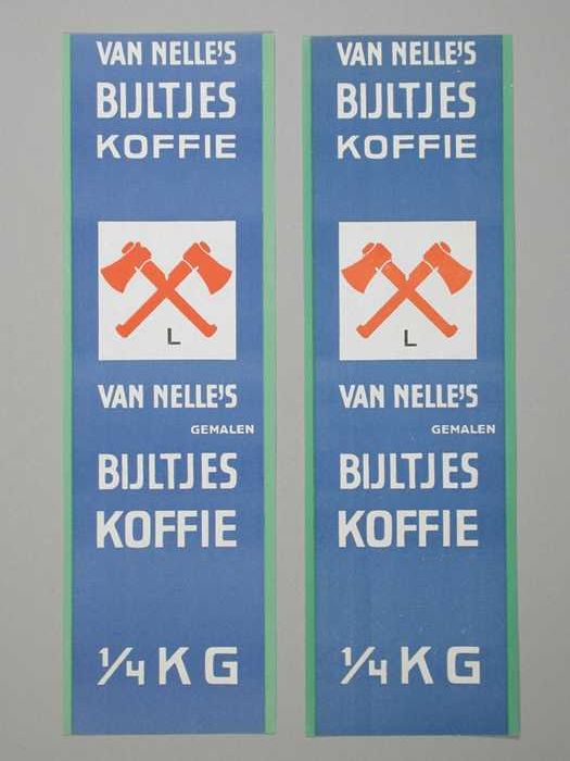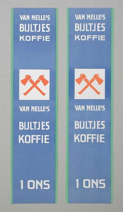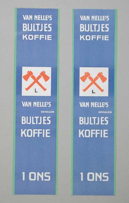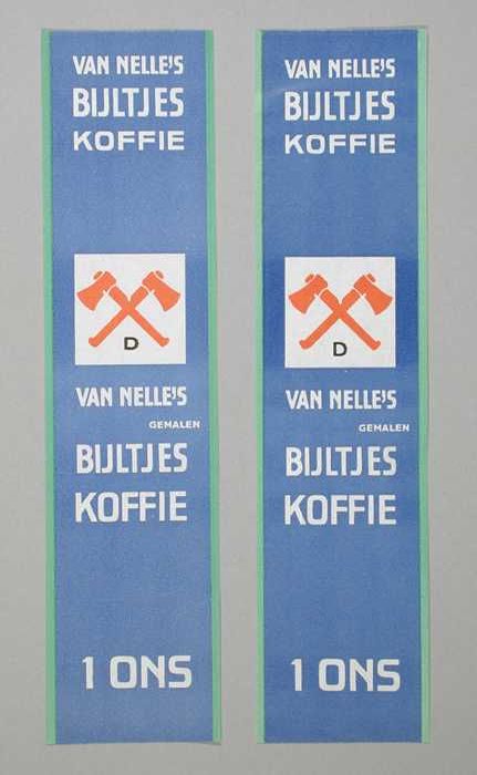 Twee papieren labels VAN NELLE'S BIJLTJES KOFFIE, 10...